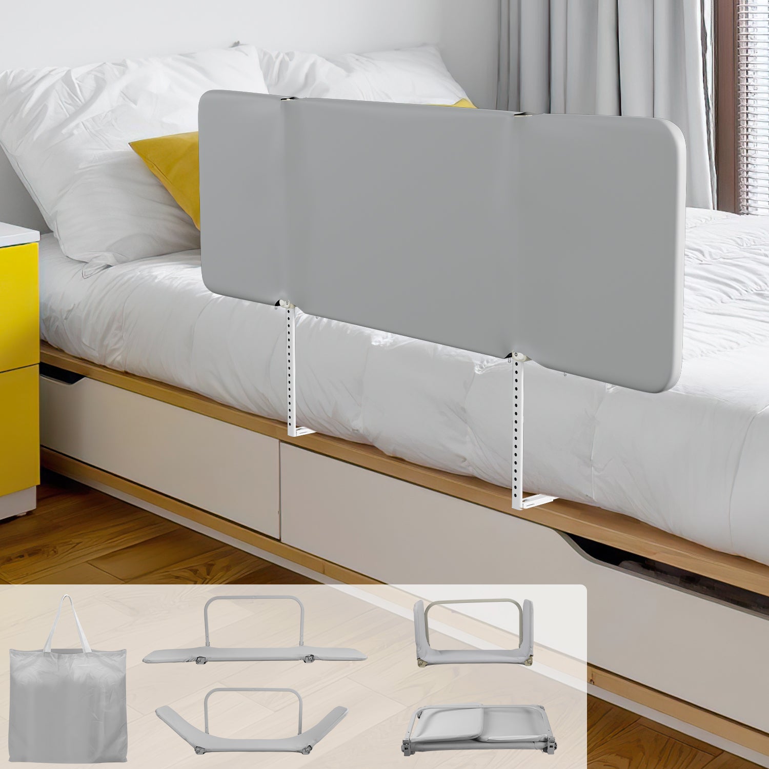 Kompakt und klappbar: Dank des faltbaren Designs und der praktischen Aufbewahrungstasche ist das Rausfallschutz Bettgitter leicht transportierbar und ideal für unterwegs. Perfekt, um es auf Reisen mitzunehmen.