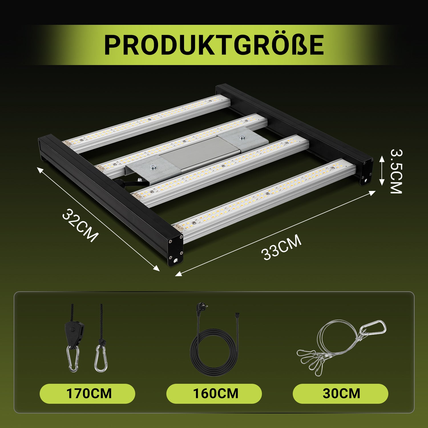 Pflanzenlampe LED Vollspektrum: Gesamtleistung von 150W. Diese Pflanzenlampe ist mit 304 hochwertigen LEDs ausgestattet(Red:48pcs W:256pcs), zusätzlich zu den 3000K, 5000K und 660 nm LEDs, strahlt alle Wellenlängen von 395nm bis 730nm aus, genau wie das natürliche Sonnenlicht. das ideale Vollspektrum, geeignet für verschiedene Phasen des Pflanzenwachstums.