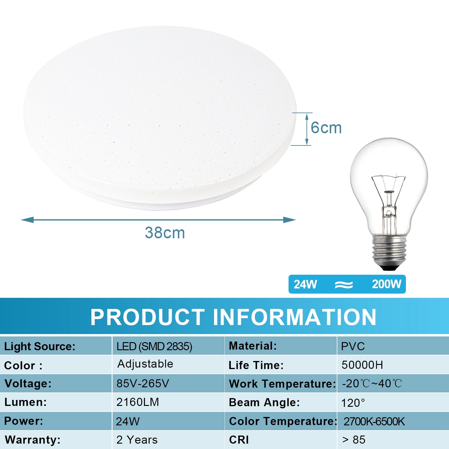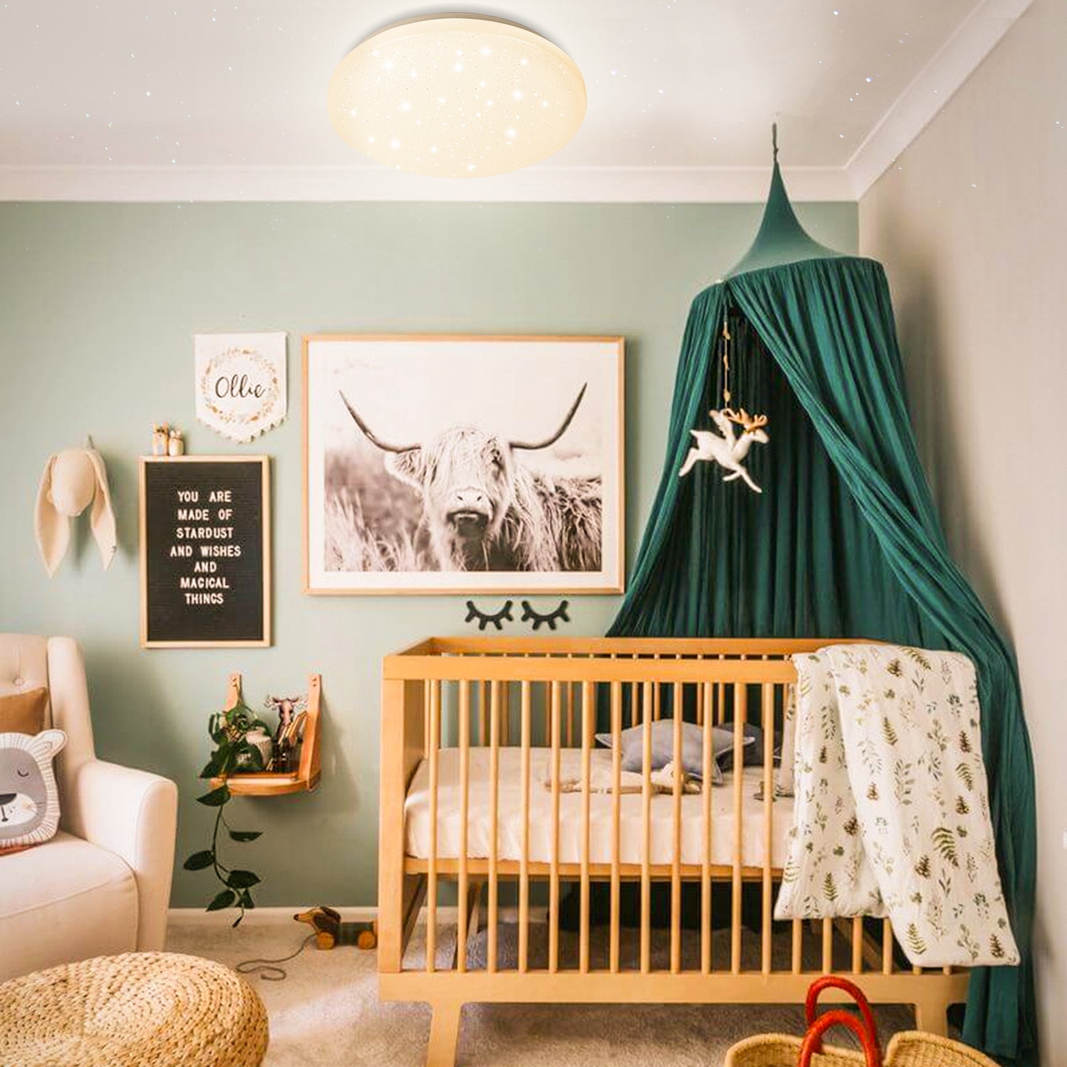 Nachtlicht Funktion & Timer-Funktion: Druecken Sie die Nachtlichttaste, um die Helligkeit auf 10% einzustellen. Die Nachtlichtfunktion kann eine ideale Schlafatmosphaere fuer Sie und Ihre Lieben schaffen. Wenn Sie die Timer-Funktion per Fernbedienung waehlen, schaltet sich die LED-Deckenleuchte nach 30 Sekunden automatisch aus.