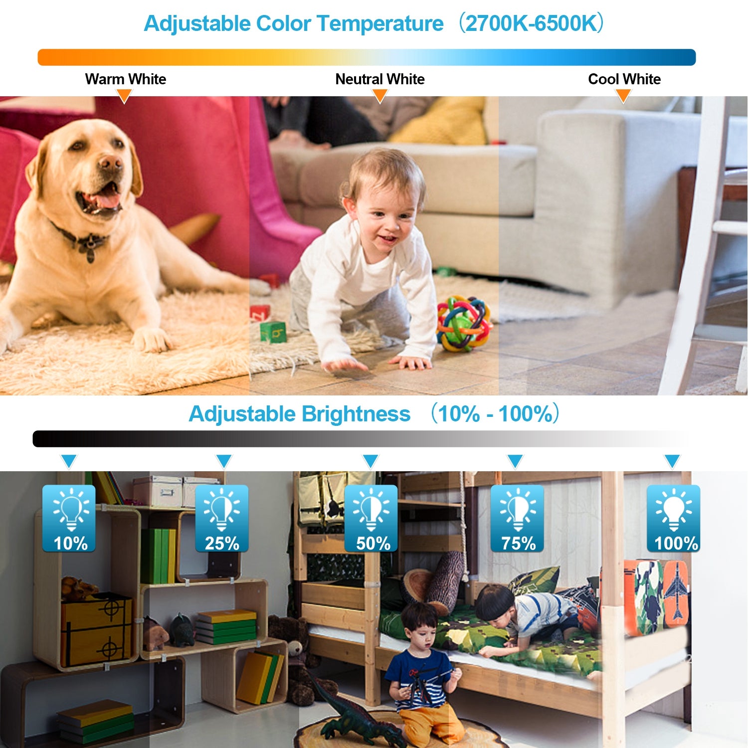 3 Farbtemperaturen: 2700K-6500K. Warmweisses Licht schafft ein angenehmes Ambiente und hilft Ihnen, sich zu entspannen, waehrend kaltweisses Licht Ihnen hilft, sich zu konzentrieren.