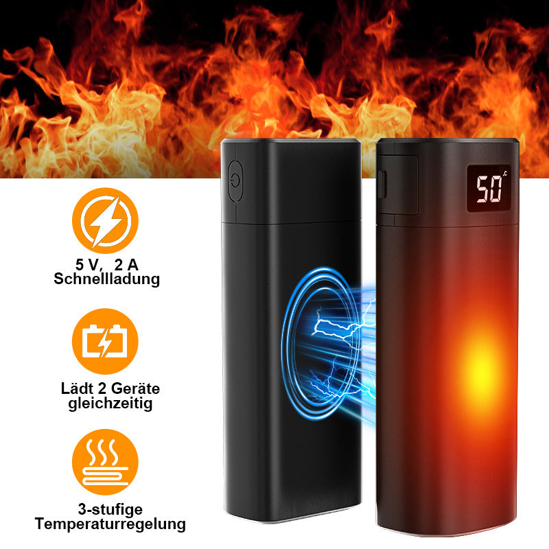 Lang anhaltende Wärme: Doppelte Vorteile. Jedes elektrische Handwärmegerät ist mit einem wiederaufladbaren 5000-mAh-Akku ausgestattet, der eine Betriebszeit von mehr als 8 Stunden bei niedriger Einstellung bietet oder Ihr Telefon mit voller Kapazität aufladen kann.