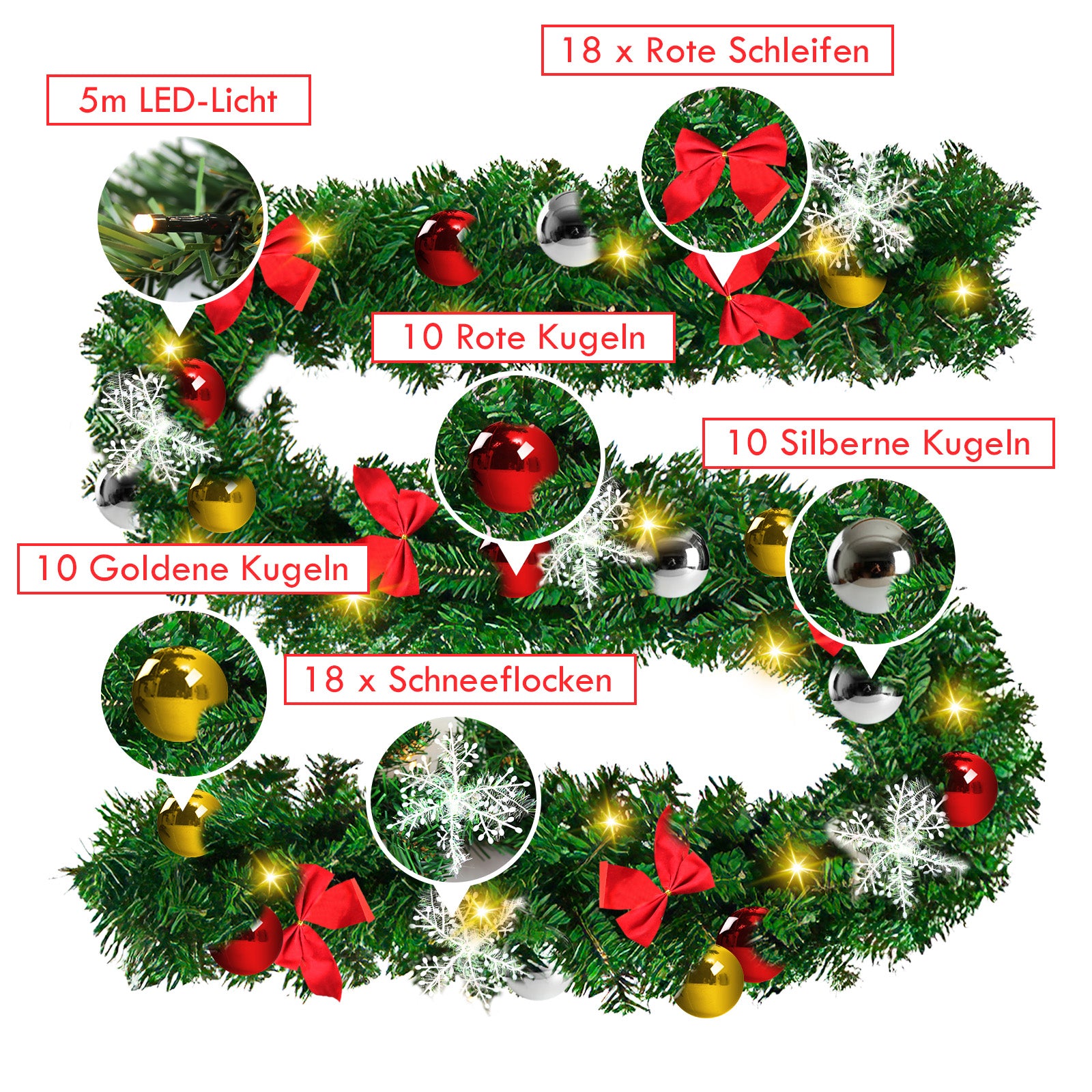 🎄【Hochwertiges bionisches Material】Betrieben wird die Tannengirlande über ein 5m langes Stromkabel, dies sorgt für viel Flexibilität beim Schmücken. Die 100 LEDs lassen ihr Heim in Weihnachtsstimmung erstrahlen. Die Lichtfarbe ist ein angenehmes warmweiß.