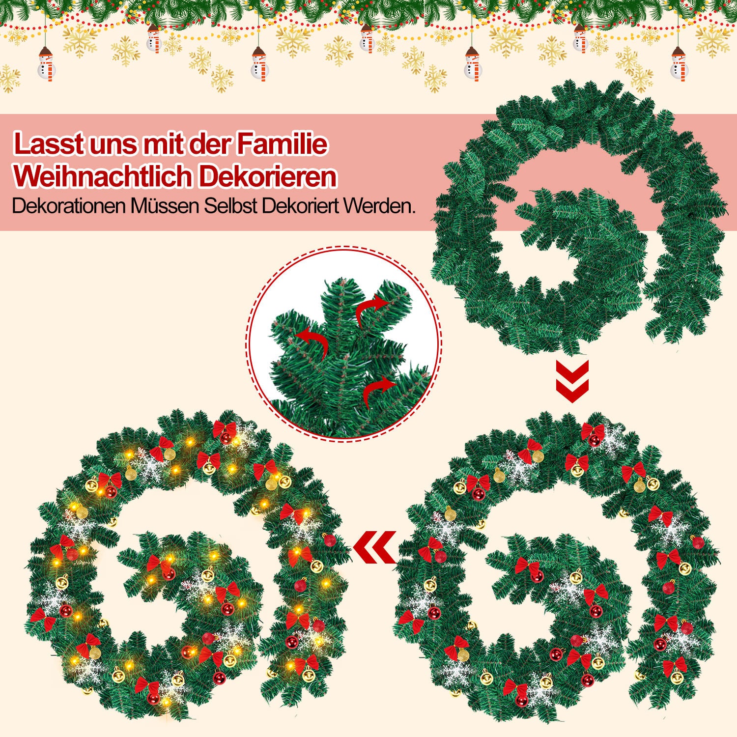 🎄【DIY-Montage】Diese Weihnachtsgirlande hat eine Dichte von 320T, was dichter ist als andere Produkte. Die einzelnen Zweige lassen sich ganz nach Ihren Wünschen verbiegen. Sie Ihrer Fantasie freien Lauf lassen und an der gewünschten Stelle anordnen und in die gewünschte Form bringen.