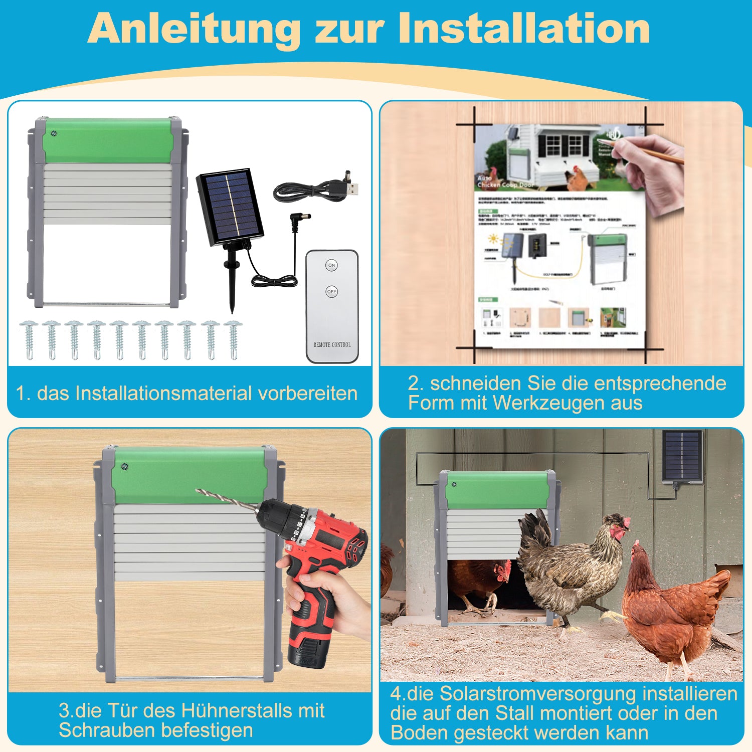 Mit einer ausführlichen Bedienungsanleitung können Sie Ihr neues Solar-Hühnerblatt in nur wenigen Schritten installieren.