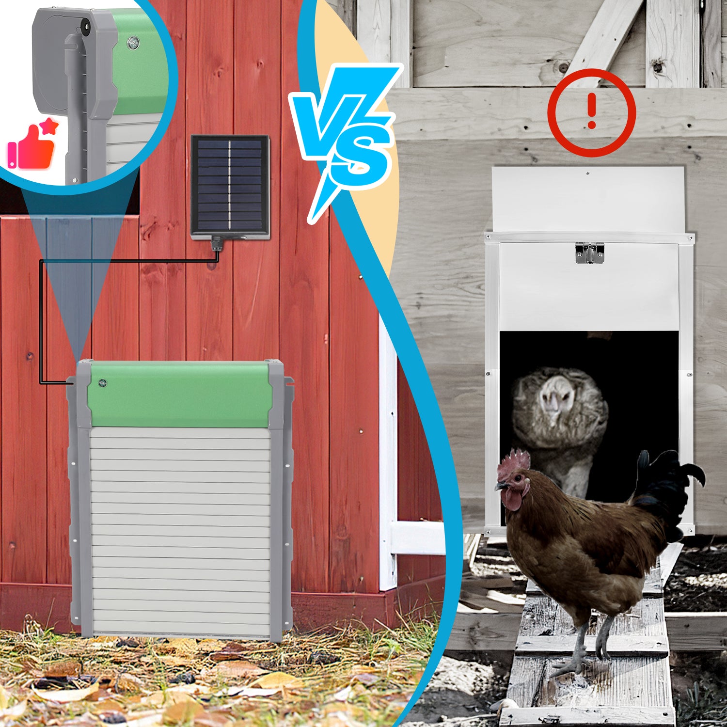 🐓 【Vielseitig】: Diese automatische Hühnerklappe Solar ist für Rolltore konzipiert, um Platz zu sparen, Automatische Hühnertür wird häufig im Innen- und Außenbereich verwendet, um Hühner, Enten, Gänse und andere Nutztiere unterzubringen.