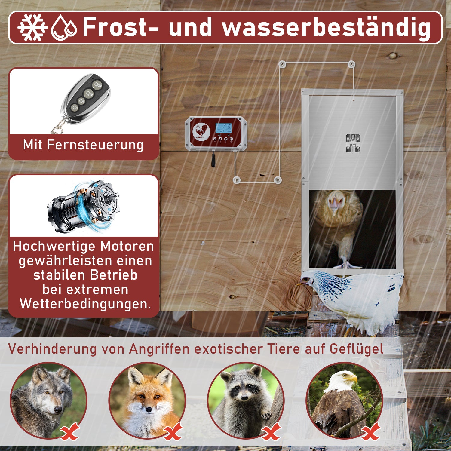 🐓【Zuverlässiger Schutz für Ihre Hühner】: Die Hühnerklappe schützt Ihre Tiere vor Gefahren wie Raubtieren oder ungünstigen Witterungsbedingungen. Mit unserer Hühnerklappe können Sie sich auf eine sichere Umgebung für Ihre Hühner verlassen.