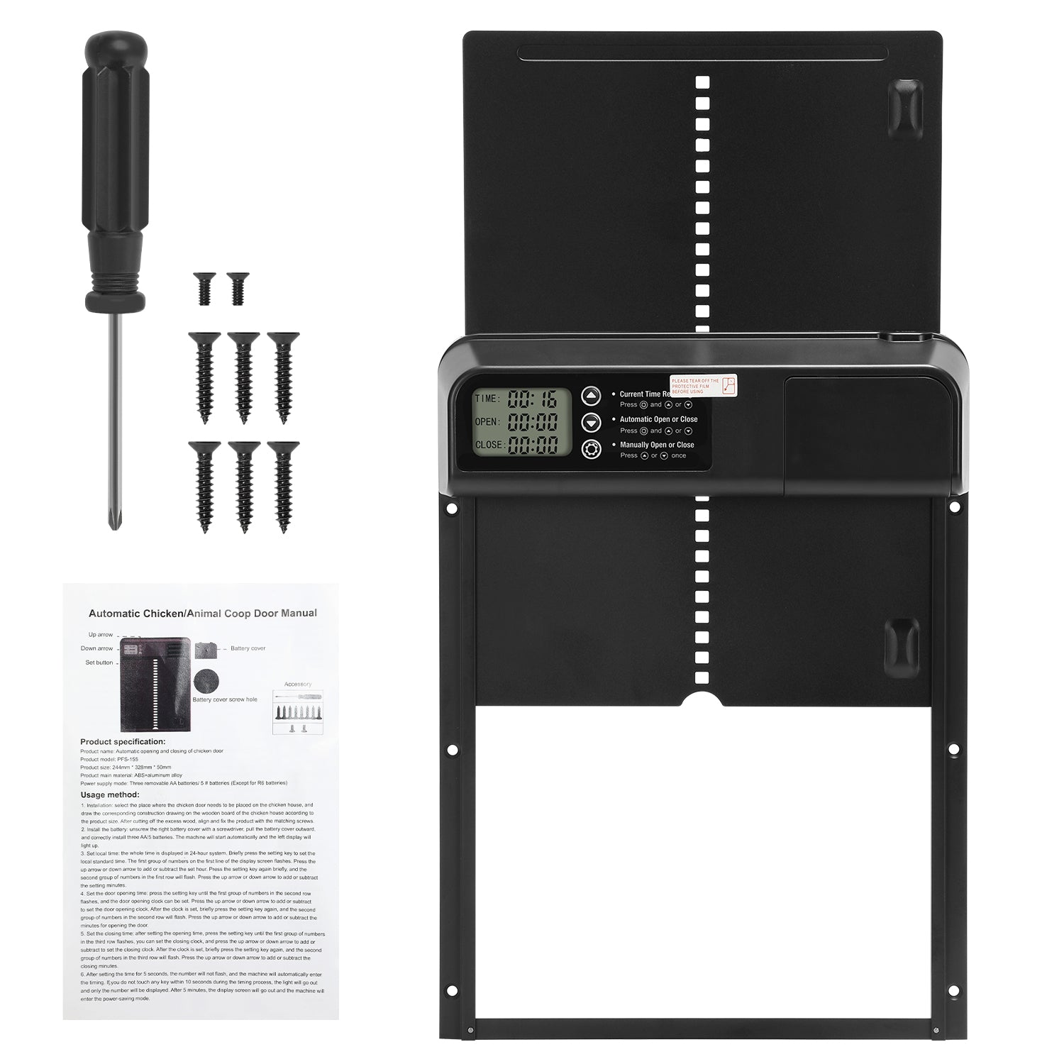 【Batteriebetrieben】Erleben Sie konstante und zuverlässige Leistung mit unserer batteriebetriebenen Hühnerklappentür. Im Vergleich zu solarbetriebenen Optionen bietet unser Produkt den Vorteil, dass es wetterunabhängig funktioniert. Das Paket enthält alle erforderlichen Werkzeuge für die Installation, einschließlich eines Schraubendrehers und 10 Schrauben, was die Montage erleichtert.