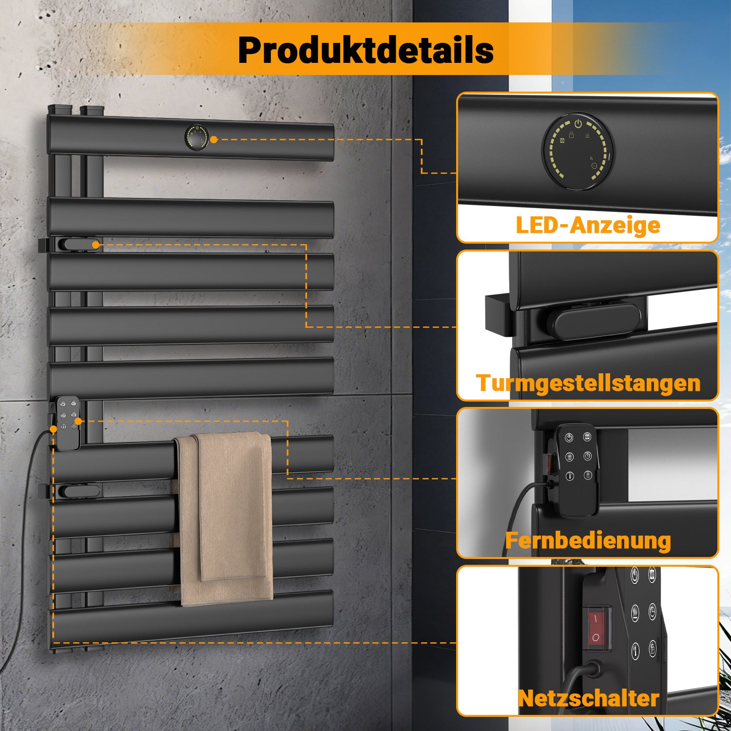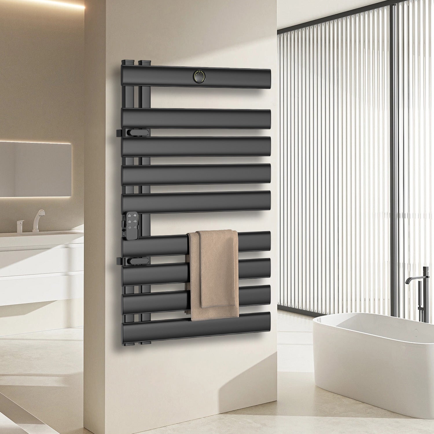 Einstellbare Temperatur: Mit der praktischen Fernbedienung lässt sich die Temperatur präzise zwischen 5–40 °C regulieren – perfekt anpassbar je nach Jahreszeit oder persönlichem Komfortempfinden. So genießen Sie stets ein angenehm warmes Handtuch oder zusätzliche Wärme im Raum.