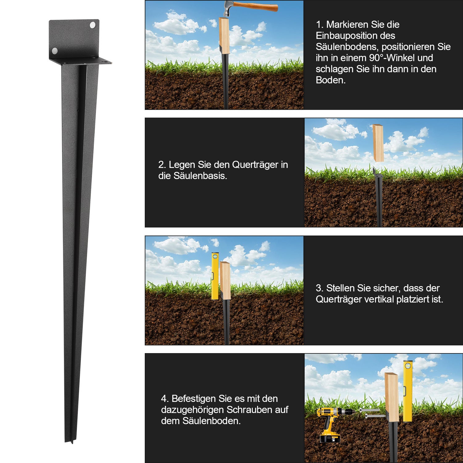 Einfache & schnelle Montage: Dank der angespitzten Form lässt sich die Hülse direkt in den Boden treiben – ohne Betonfundament. Inklusive Befestigungsschrauben für eine sichere Installation.