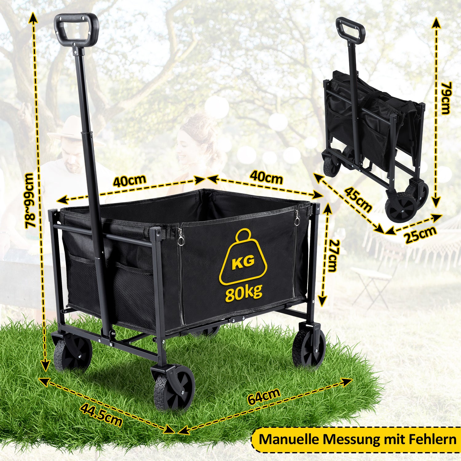 Vielseitig Einsetzbar: Der Bollerwagen faltbar eignet sich nicht nur zum Einkaufen und Campen mit Freunden oder der Familie, er kann auch als Schlepper auf Baustellen oder als Anhänger für Rasentraktoren verwendet werden und ist auch ideal für den Transport von Rasenschnitt, Holz usw. Er eignet sich auch für Strandausflüge, Picknicks, Camping, Einkaufen, Gartenarbeit, Kinderwagen mit Haustieren/Babys usw.