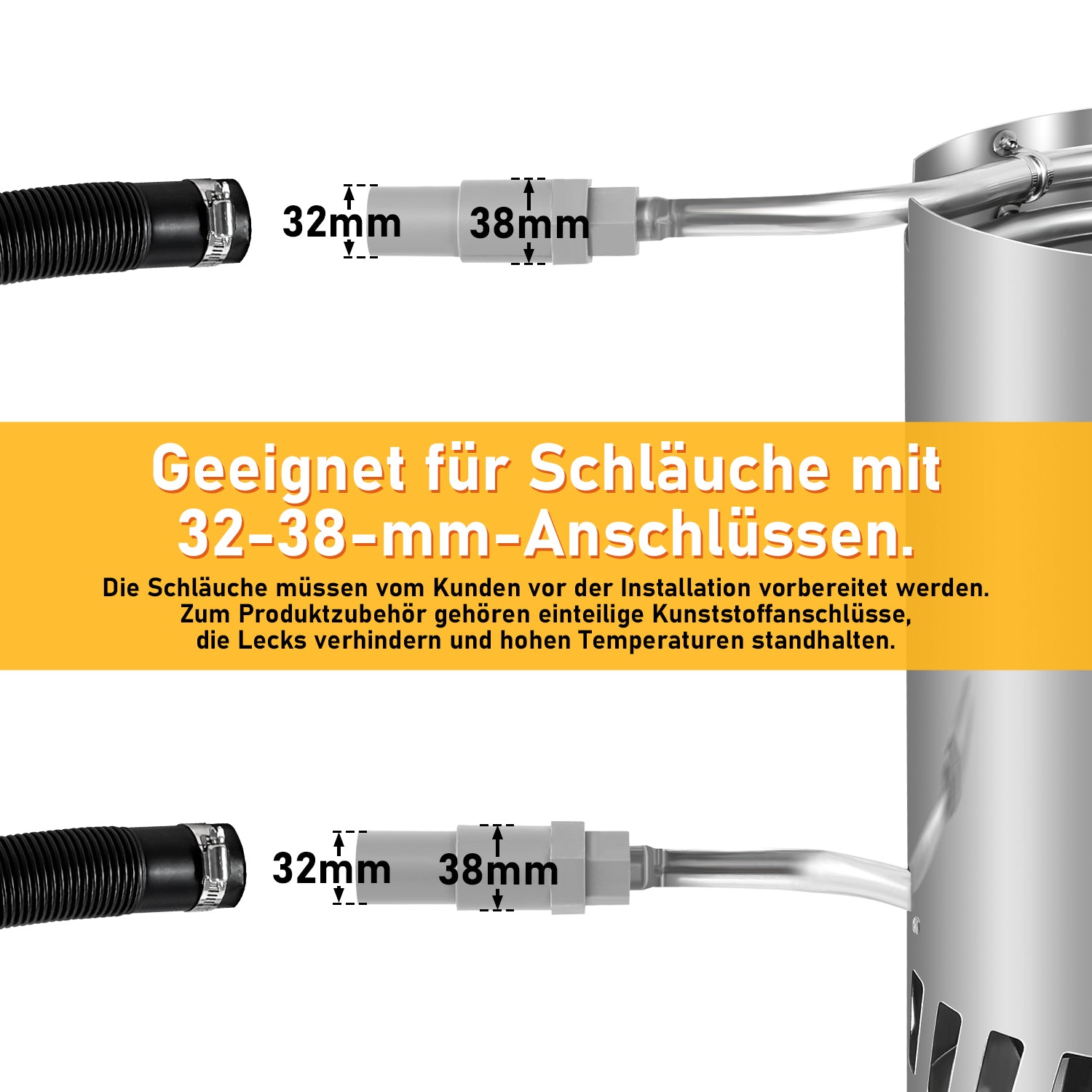 [Effizienter Heizvorgang durch dicke Edelstahlrohre]: Die Brennholz Poolheizung ist mit extra dickem Edelstahlheizrohr ausgestattet (Durchmesser: 20 mm, Dicke: 1 mm), das eine höhere Durchflussrate und eine bessere Heizleistung ermöglicht. Mit einer Länge von 12 Metern und der Möglichkeit, einen 32-38 mm Schlauch anzuschließen, sorgt unsere Schwimmbadheizung für schnelle und gleichmäßige Erwärmung des Poolwassers.