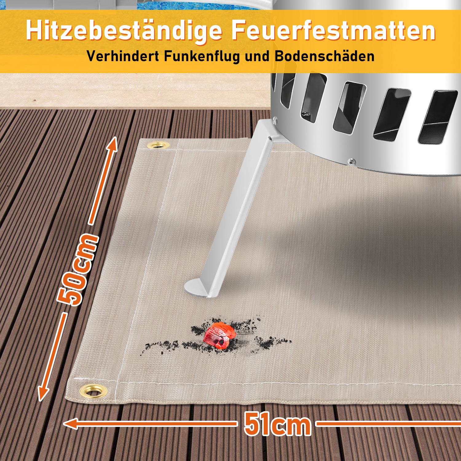 [Sicher und benutzerfreundlich – Ideal für den Außenbereich]: Unsere Feuertonne für die Poolheizung Holz ist mit einem Sicherheitsablage-Tablett und einer feuerfesten Matte ausgestattet, um den Boden vor Funken und Asche zu schützen. Die feuerfeste Unterlage sorgt für einen sicheren Stand, sodass Sie den Poolofen sorglos im Garten oder auf der Terrasse verwenden können.