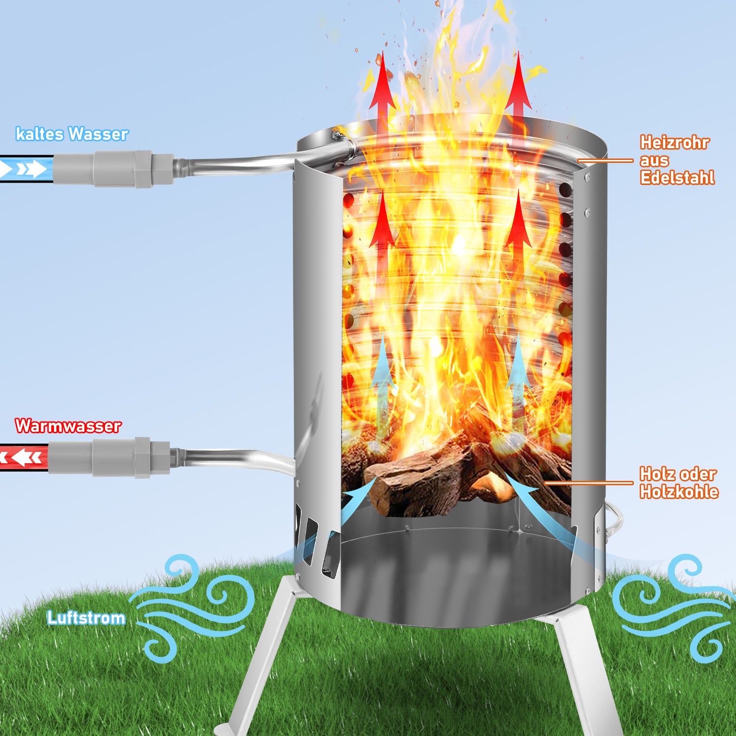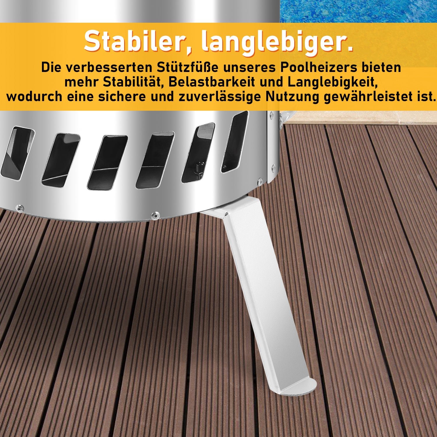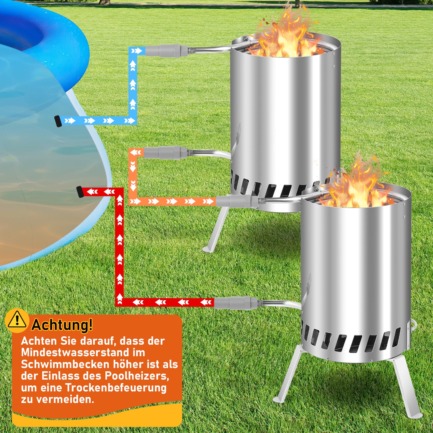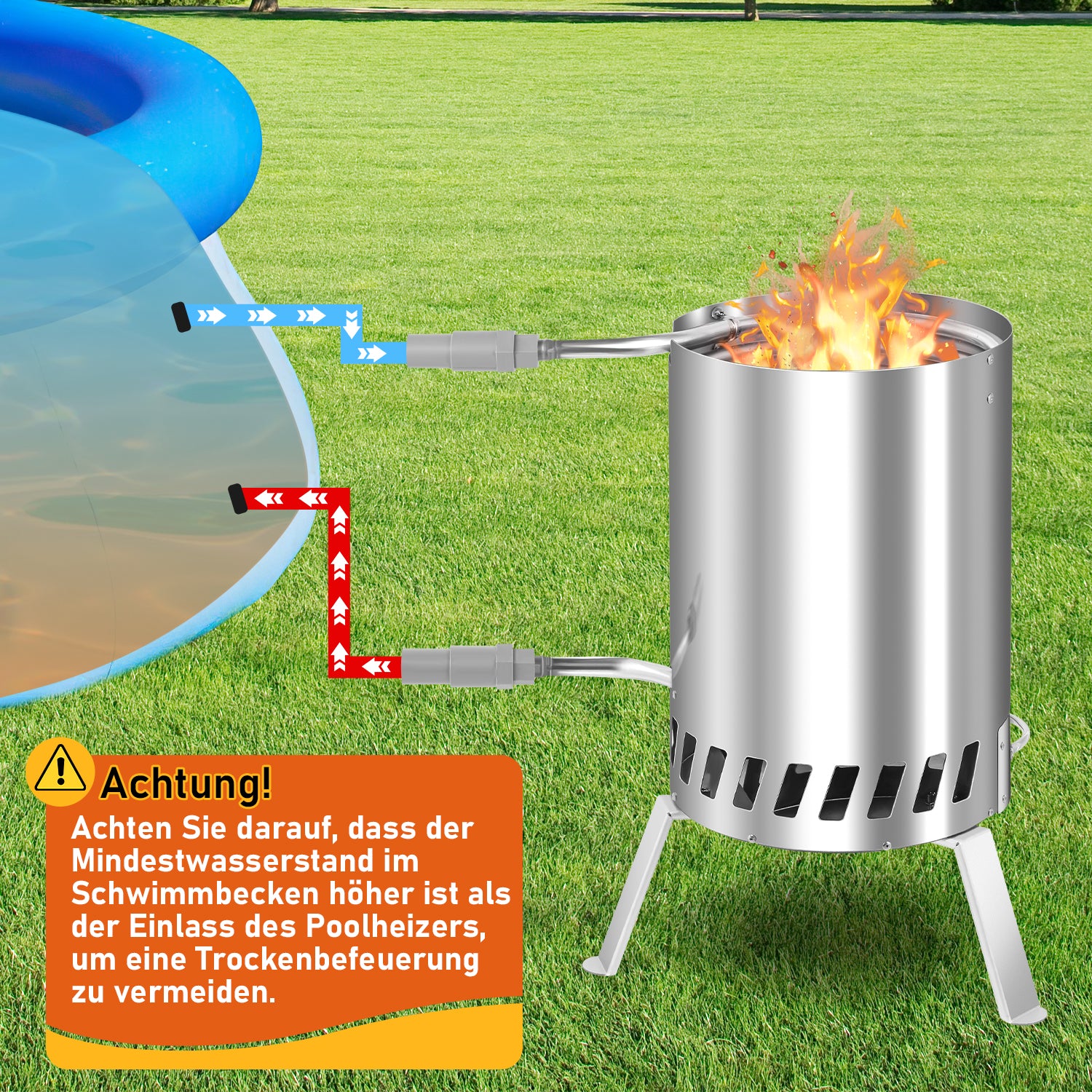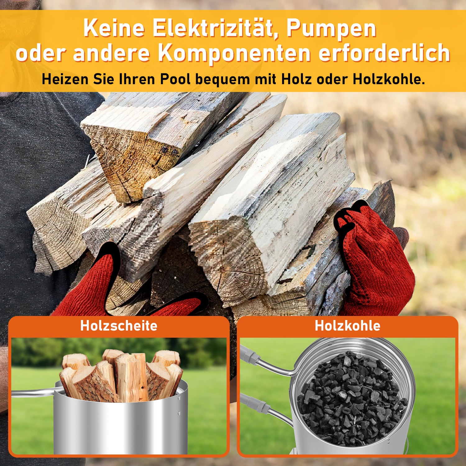 [Effiziente und kostengünstige Beheizung für Ihren Pool]: Genießen Sie die Freiheit, Ihren Pool unabhängig von Strom und Wetterbedingungen zu beheizen. Unsere Brennholz Poolheizung nutzt Brennholz, Briketts oder Holzkohle, um Ihr Schwimmbad schnell auf die gewünschte Temperatur zu bringen. Mit der Schwimmbadheizung können Sie die Pool-Saison jederzeit starten und das ganze Jahr über angenehm schwimmen.