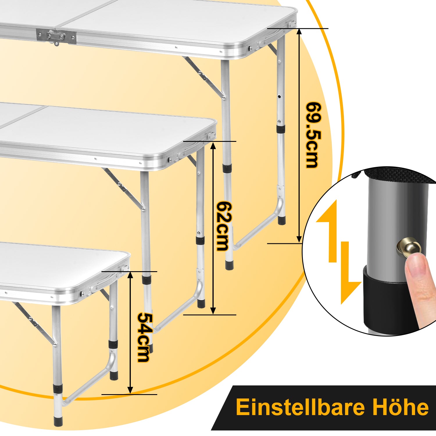 Höhenverstellbar: Der Tisch kann je nach Bedarf auf eine Höhe von 50-70 cm eingestellt werden.