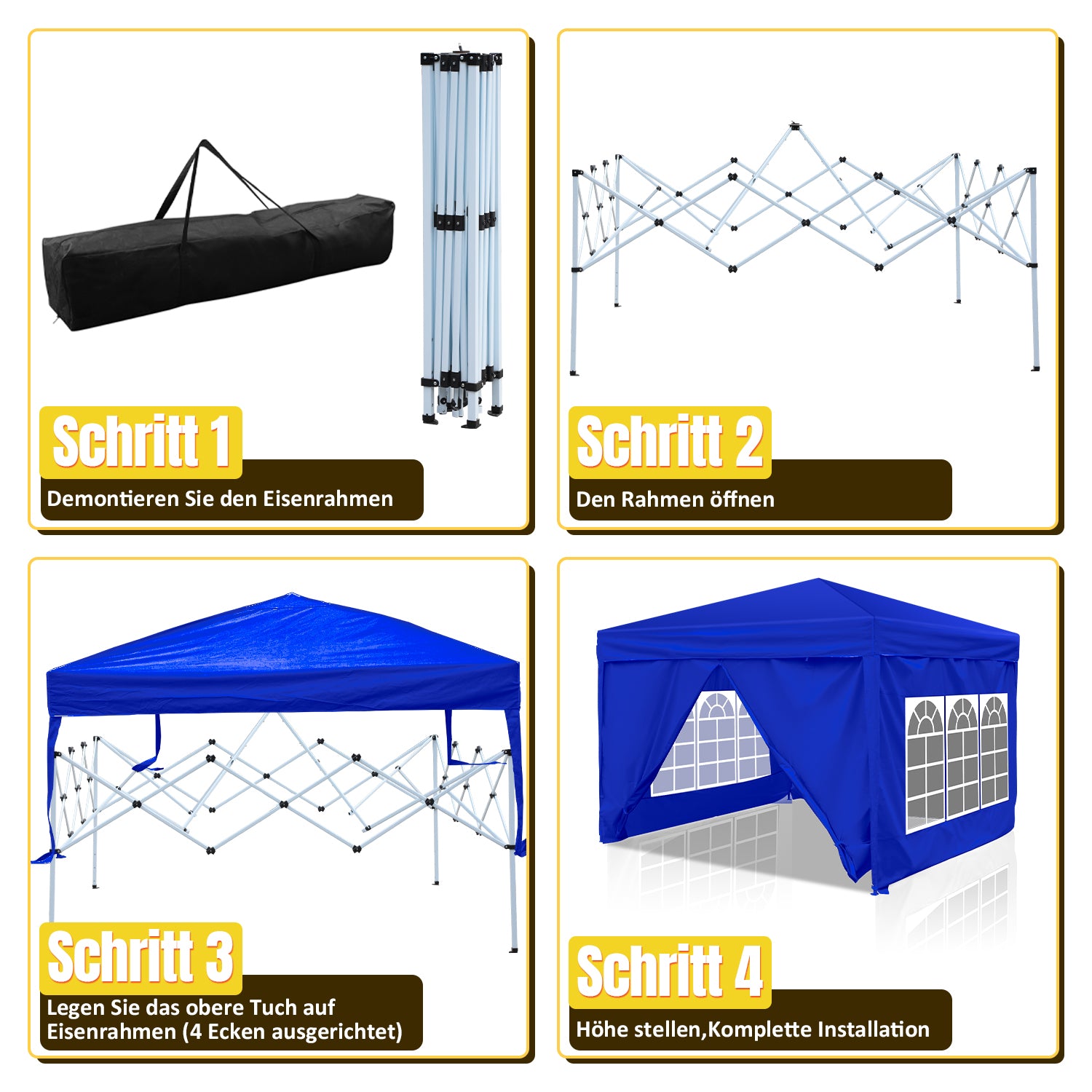 Pop-up-Design: Der faltbare Pavillon nimmt ein Pop-up-Design an, das nur 1-2 Leute ein paar Minuten braucht, um das Zelt zu öffnen und die Installation ohne Werkzeug abzuschließen, was große Bequemlichkeit bietet.