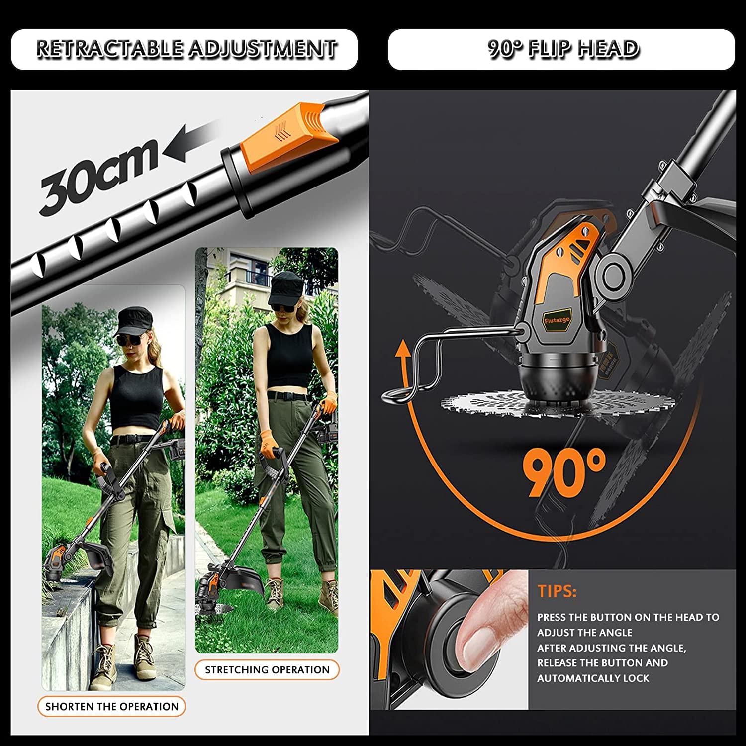 ▶ 【Effizientes und sicheres Schneiden】 Unser kabelloser Rasentrimmer ist mit einem Hochleistungsmotor aus reinem Kupfer mit einer Leerlaufdrehzahl von 18000 U / min ausgestattet Batterien für Ihren Dauereinsatz. die alle Ihre täglichen Rasenmäh- und Gartenschnittanforderungen erfüllen können.