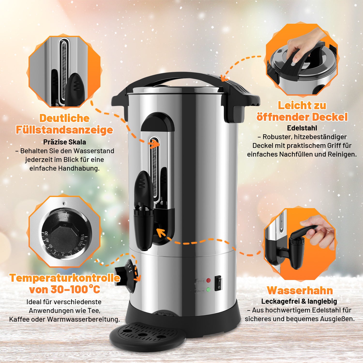 ✪ Aufheiz- & Warmhaltefunktion: Mit Glühweinkocher 8 Liter können Sie einfach und schnell alle Getränke erwärmen und warmhalten. Die Füllstandsanzeige zeigt Ihnen den aktuellen Flüssigkeitsinhalt an.
