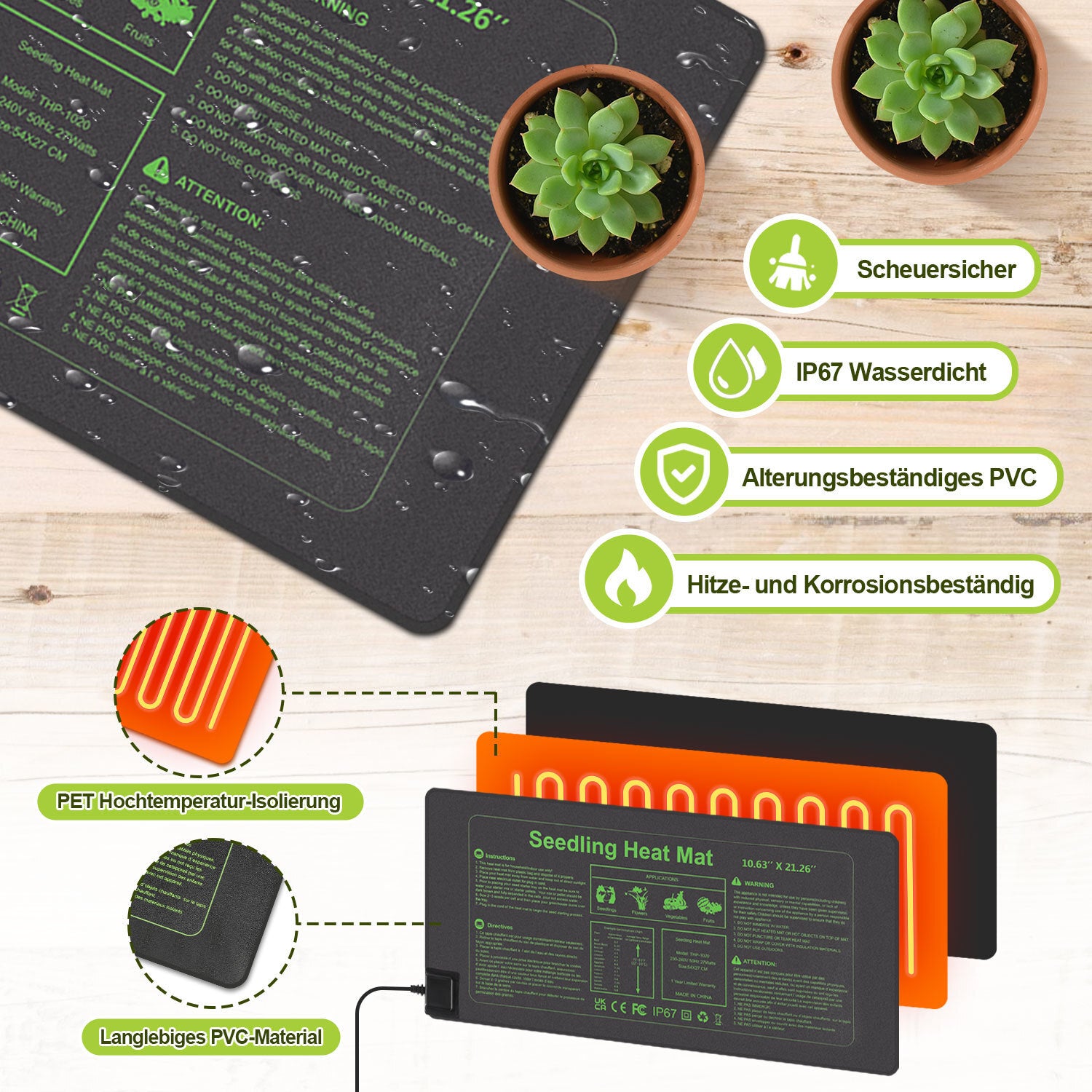 Thermostat mit Speicherfunktion: Der Thermostat des Wärmematte verfügt über eine Speicherfunktion, die automatisch den letzten Einstellwert wiederherstellen kann. Ob für den täglichen Gebrauch oder für besondere Anforderungen, es erhöht den Bedienkomfort und bietet Ihren Pflanzen eine stabile Wärmeversorgung.
