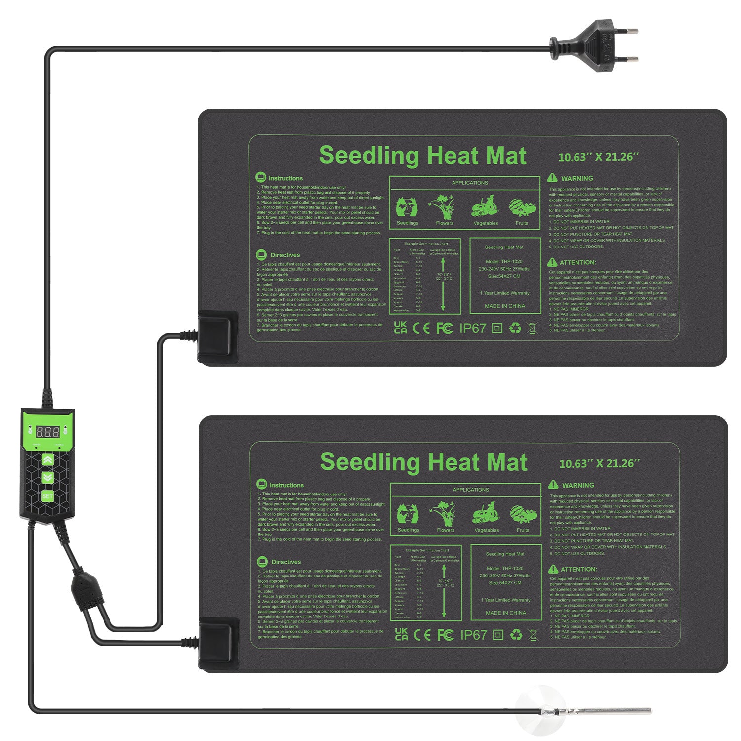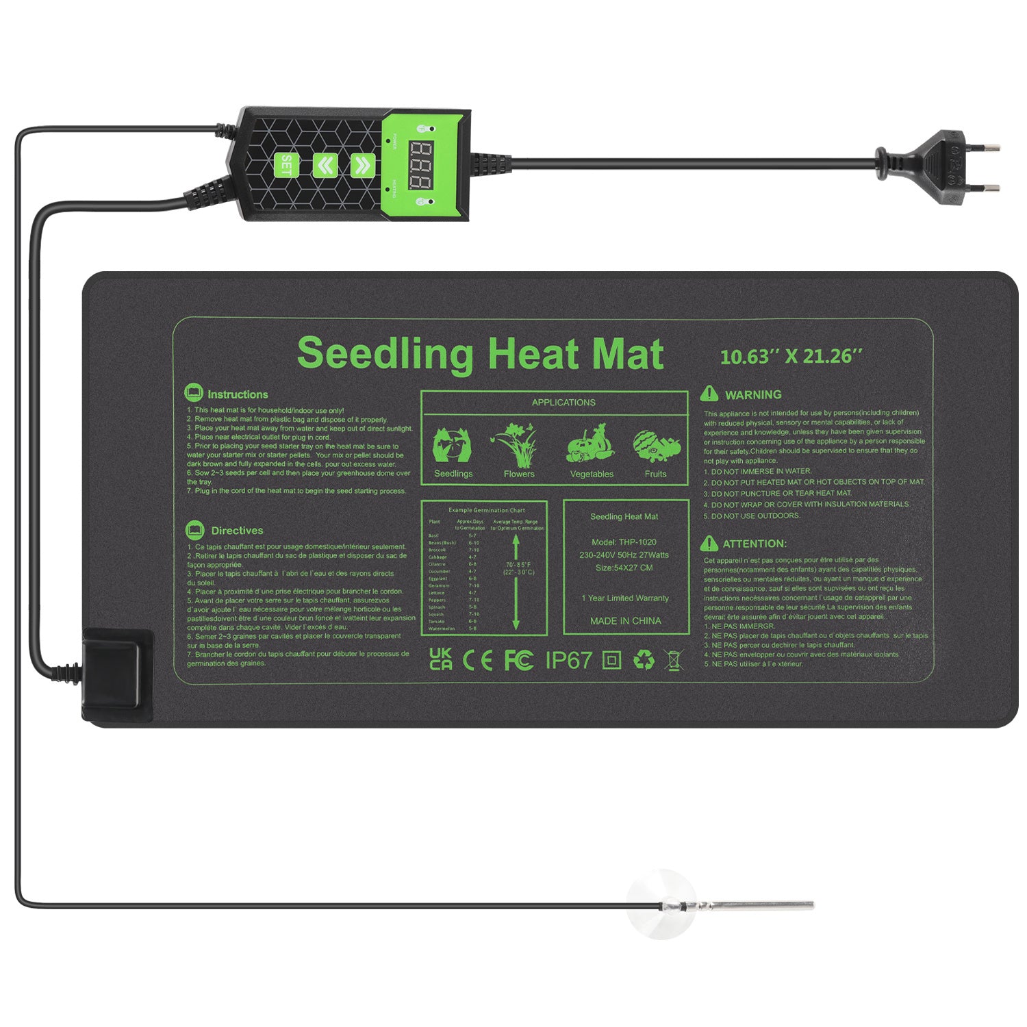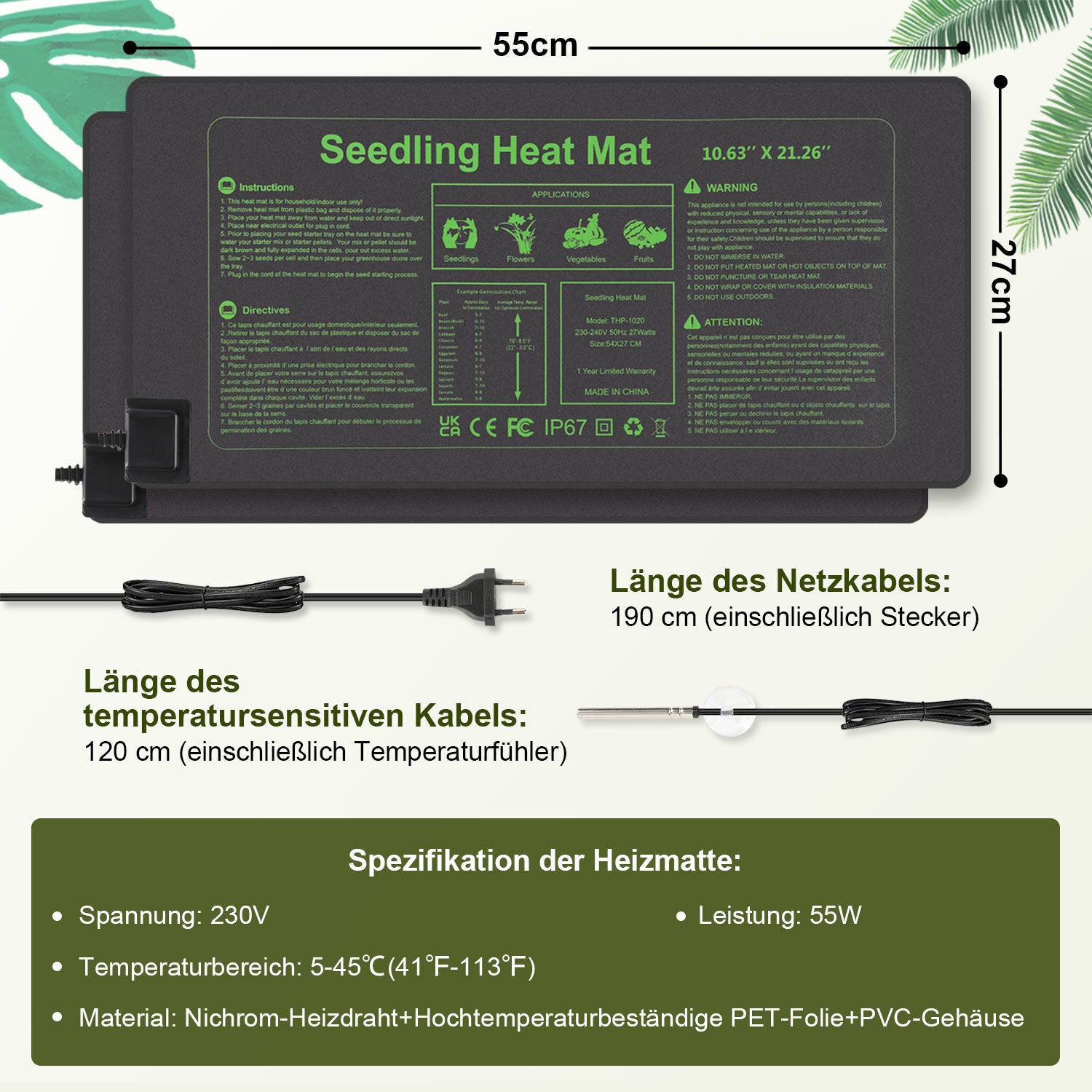 Flexible Temperaturregelung: Das Heizmatte pflanzen ist mit Thermostat und Sensor ausgestattet, der Temperaturregelungsbereich reicht von 5 bis 45 Grad Celsius, und es kann auch frei zwischen Celsius und Fahrenheit umschalten, Echtzeitanzeige der genauen Temperatur, die zur Verbesserung der Erfolgsrate der Keimung und Sämling Stadium und erfüllen die Wachstumsbedürfnisse der verschiedenen Pflanzen.