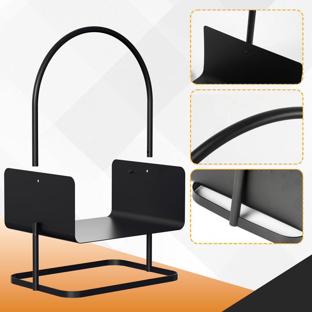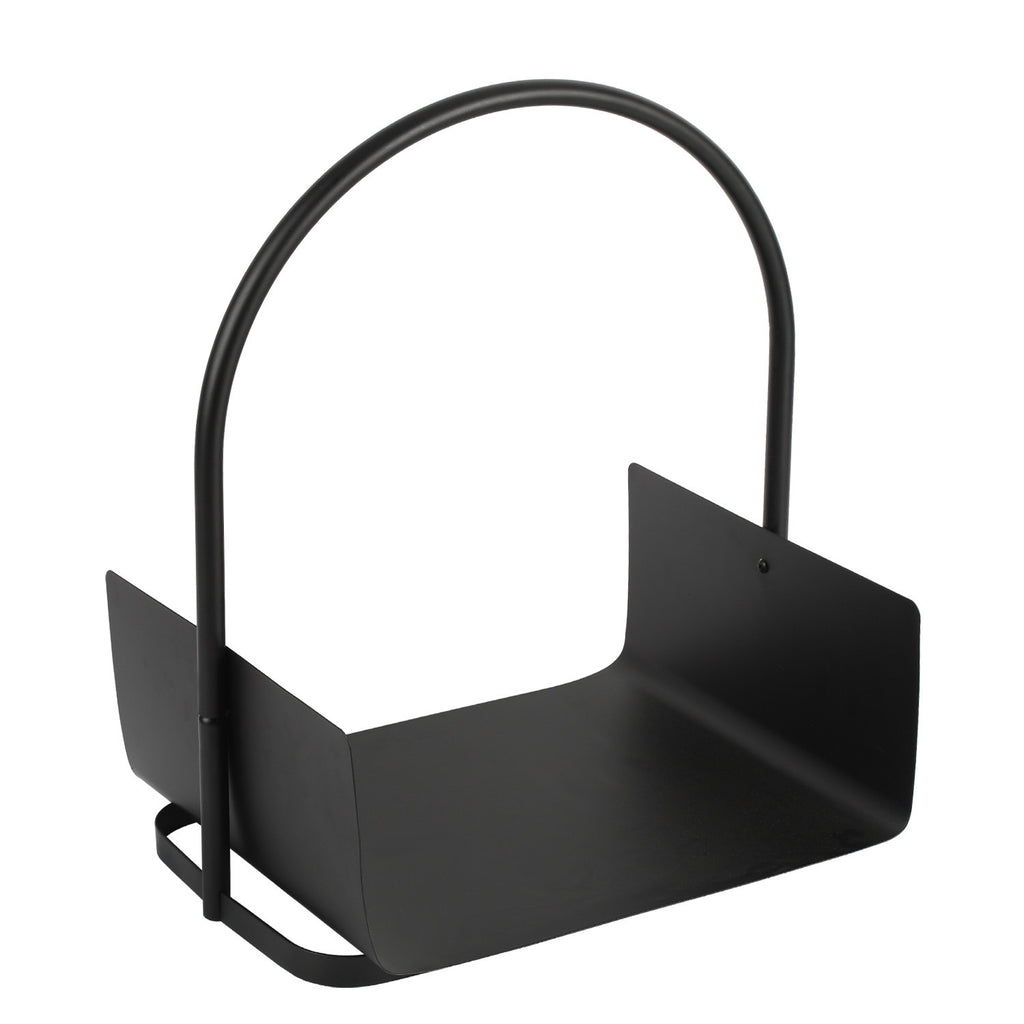 Praktisch für das Leben: kaminholzregal mit rundem Griff, aus schwarzem pulverbeschichtetem Eisen, leicht zu tragen und einfach zu transportieren.
