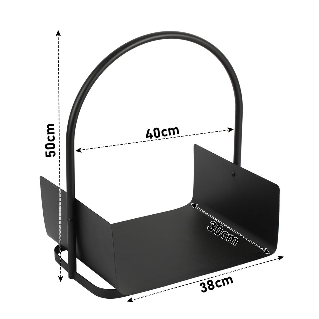 Schlichtes Design: mattschwarzer moderner Kaminholzkorb, effiziente Raumnutzung, vielseitige Raumdekoration.