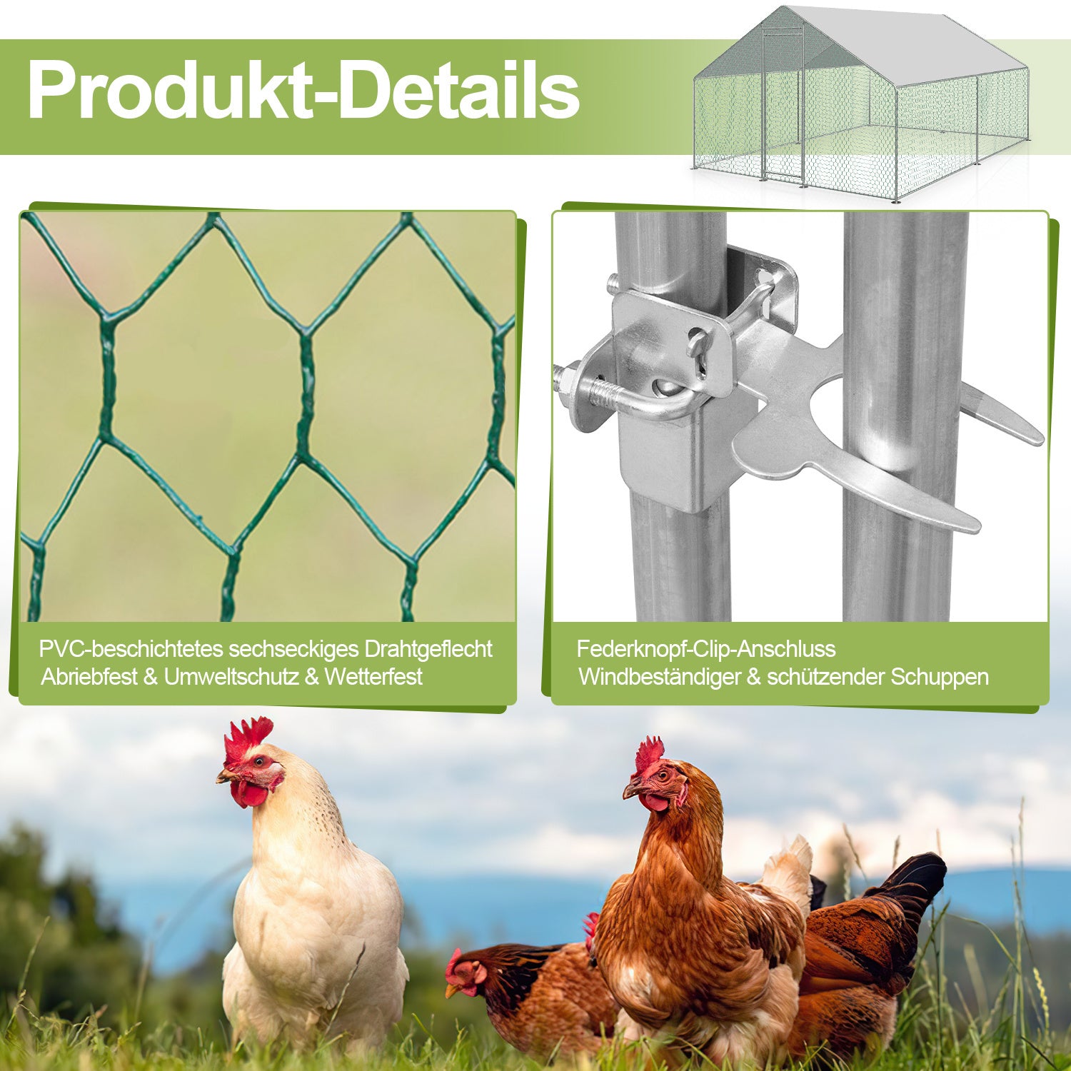☑ Qualitätsmaterial: Der Hühnerstall ist aus hochwertigem Stahlrahmen, feuerverzinktem Metallrohr mit einem Durchmesser von 25mm, starke Haltbarkeit, Anti-Korrosion und Anti-Rost, mit einer Größe von 3x3x2m, bietet der Hühnerstall genügend Platz für Geflügel, geeignet für Hühner, Kaninchen und andere kleine Tiere, um sich frei darin zu bewegen.