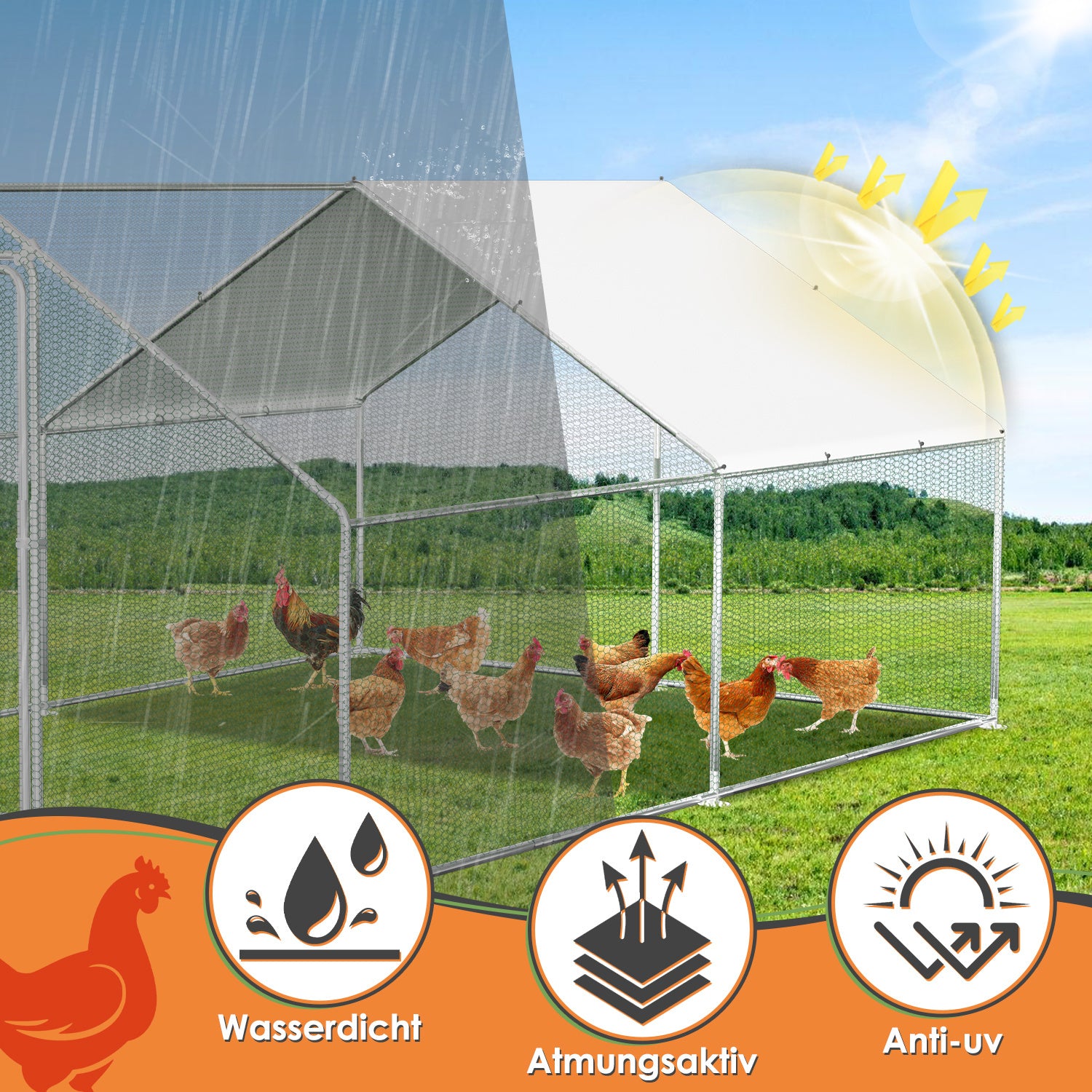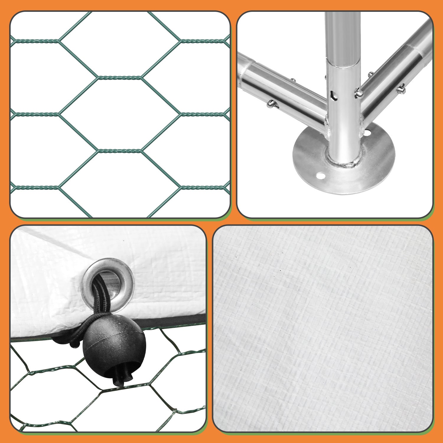 Langlebige Stahlkonstruktion: Hühnerstall Hergestellt aus hochwertigem Stahlrahmen, Abmessungen: 3 x 4 x 2 m (B x T x H), für Geflügel, um freien Raum im Inneren zu haben und einfach zu installieren oder zu demontieren und einfach zu bedienen ist.