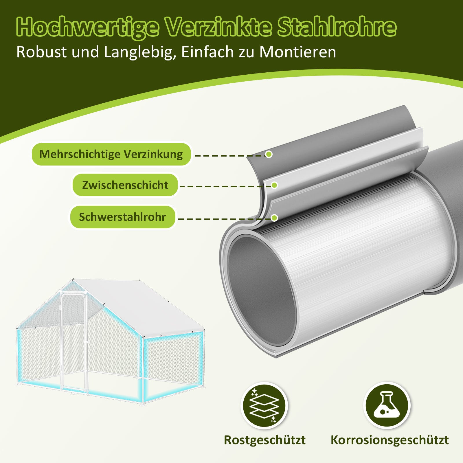 Langlebige Stahlkonstruktion: Hühnerstall Hergestellt aus hochwertigem Stahlrahmen, Abmessungen: 3 x 2 x 2 m (B x T x H), für Geflügel, um freien Raum im Inneren zu haben und einfach zu installieren oder zu demontieren und einfach zu bedienen ist.