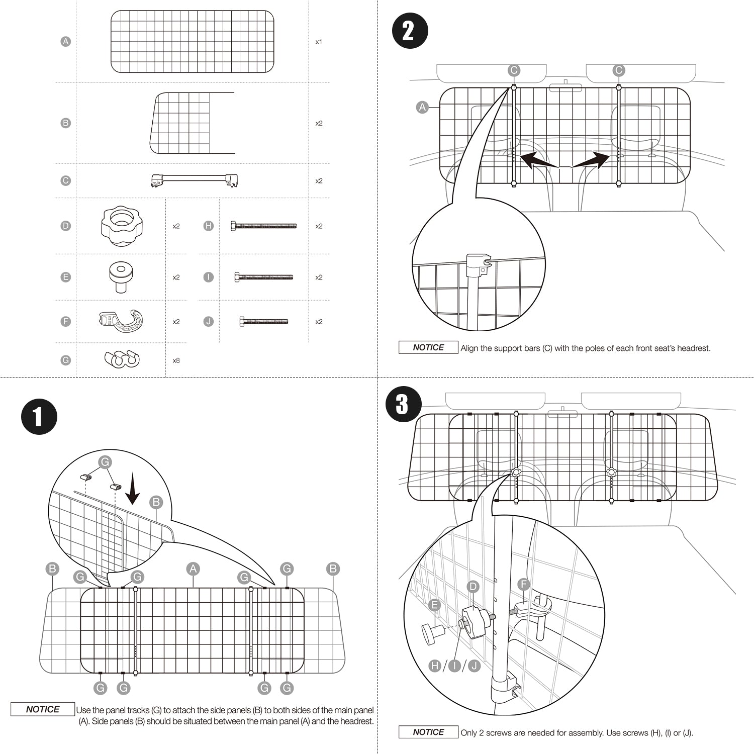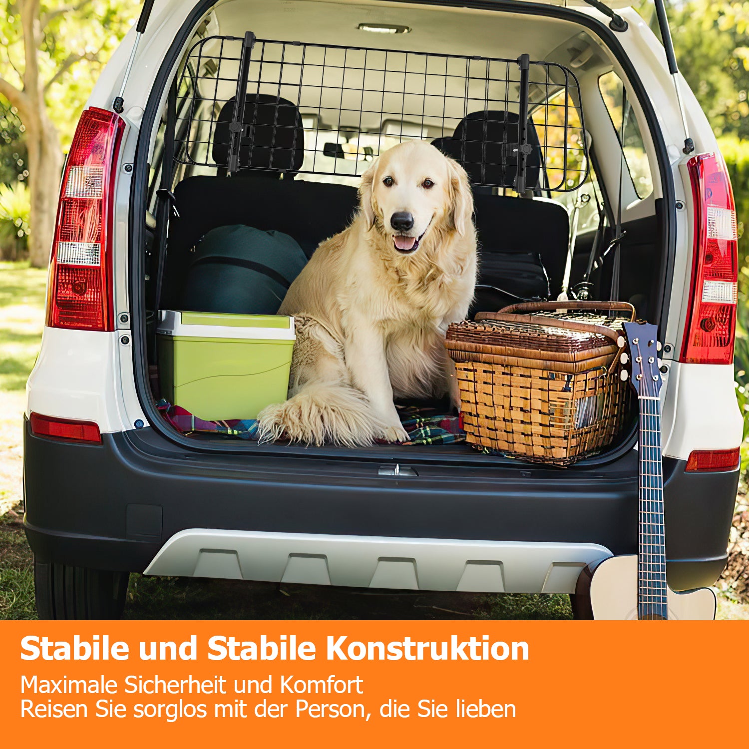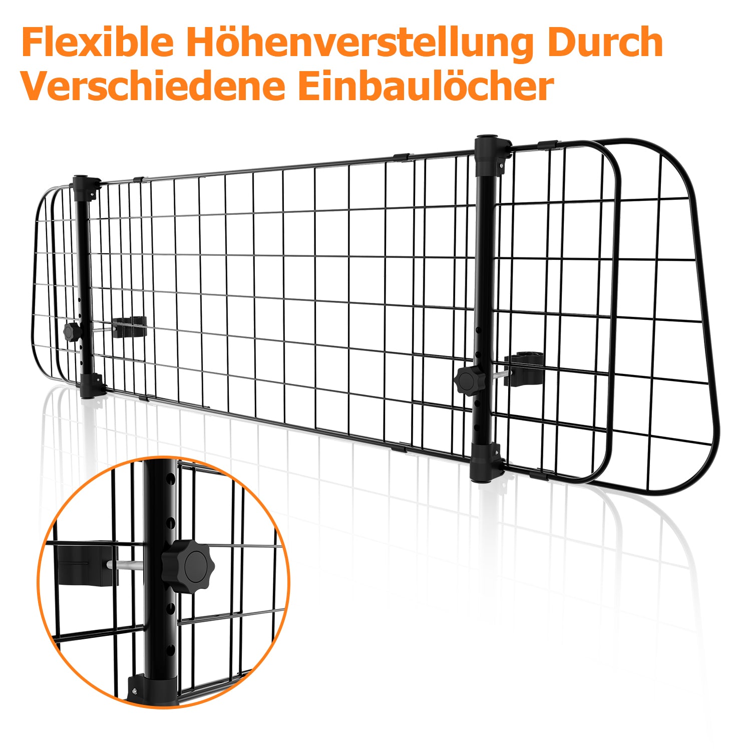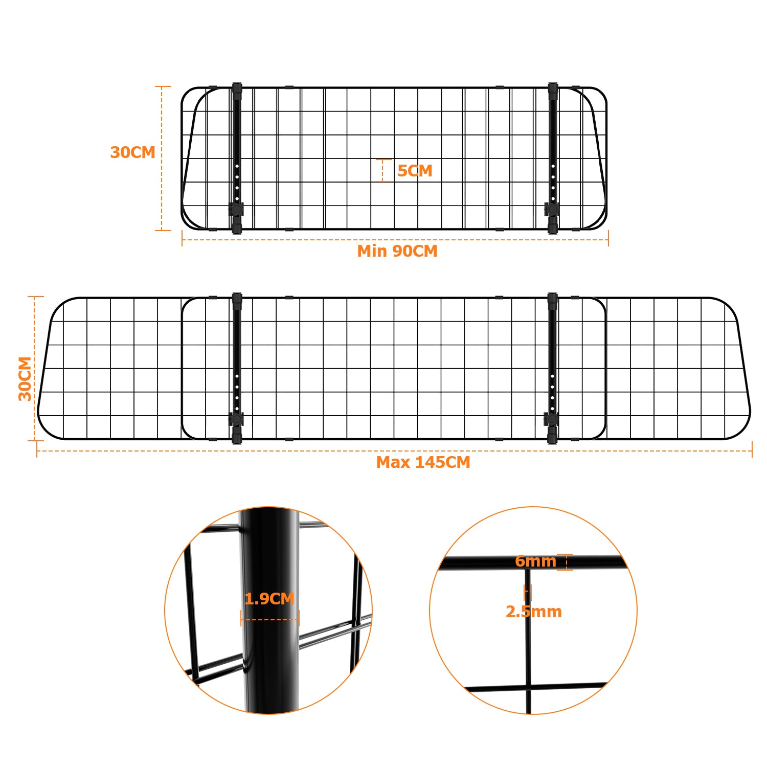 【Einstellbare Breite】Die Höhe des Hundegitters beträgt 30 Zentimeter, und die Breite kann stufenlos von 90 Zentimeter bis 145 Zentimeter eingestellt werden, um die Anwendungsanforderungen verschiedener Szenarien zu erfüllen. Der Abstand zwischen Gitter und Kopfstütze kann separat eingestellt werden, um eine perfekte Trennung während der Fahrt zu erreichen.