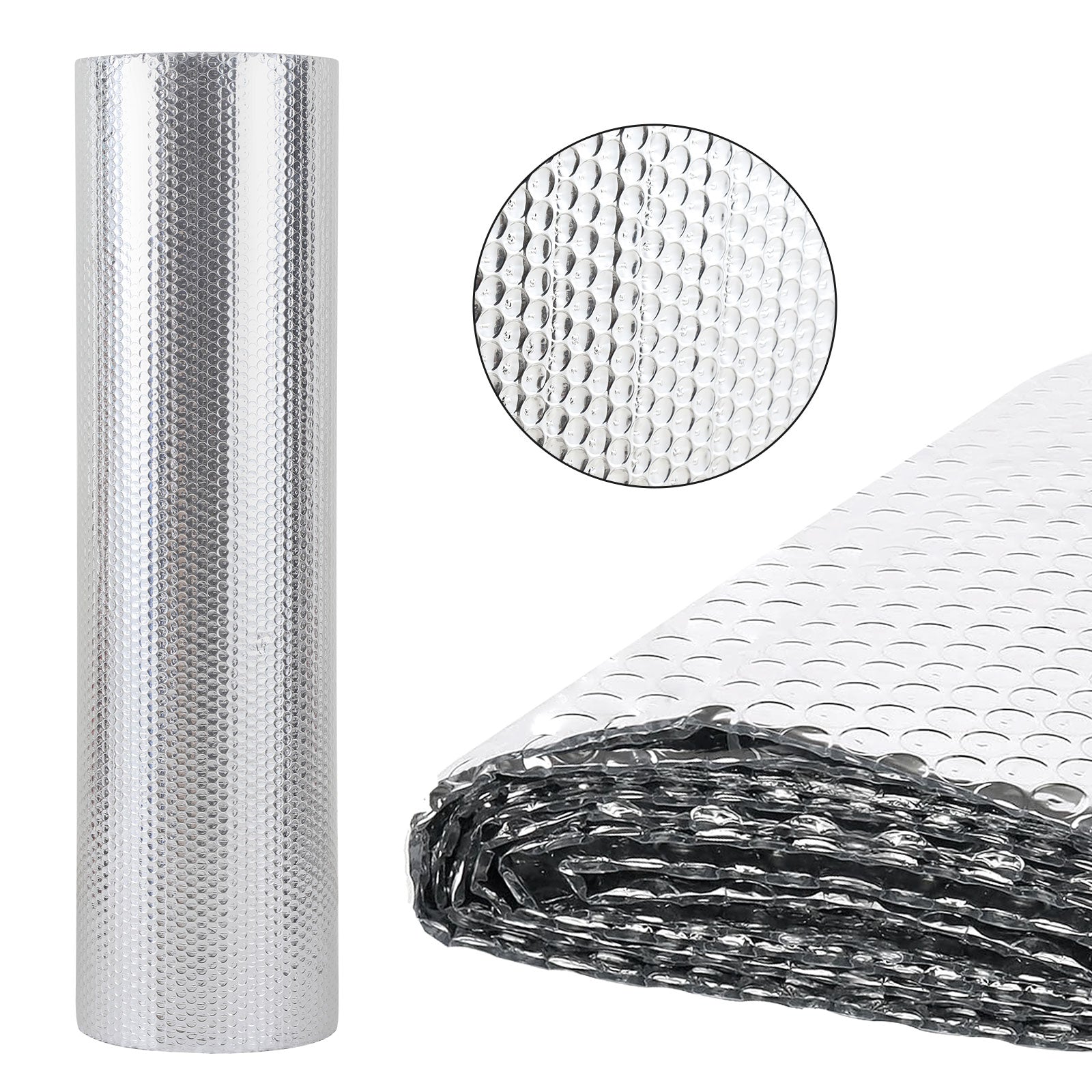 🌡Därmeisolierung und Hitzeschutz: Die Doppelseitige Isolierfolie verfügt über eine oberflächliche Aluminiumfolie, die UV-Strahlen und Wärme reflektiert, während die untere Aluminiumfolie verhindert, dass Wärme aus dem Innenraum entweicht. Dadurch entsteht ein doppelter Schutz vor Hitze.
