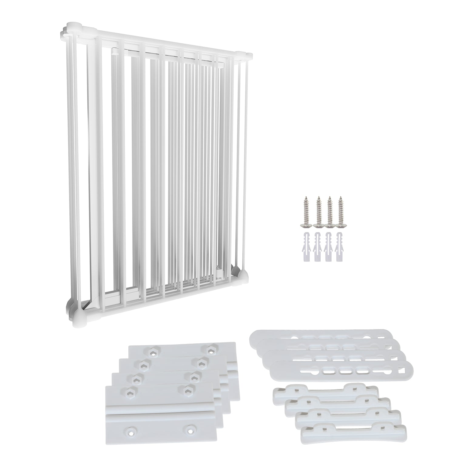 🥰Schwankbare Wandbeschläge: Dein Gitter wird fest mit Hilfe von schwenkbaren Beschlägen an der Wand verschraubt. Das macht die sichere Montage sowohl innen und außen am Türrahmen, als auch in verschiedenen Winkeln am Treppenaufgang oder als Raumteiler möglich. kann das Gitter ohne Werkzeug einfach vom Wandbeschlag wieder entfernt werden.