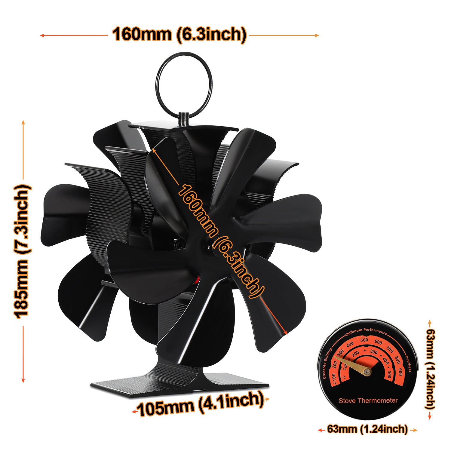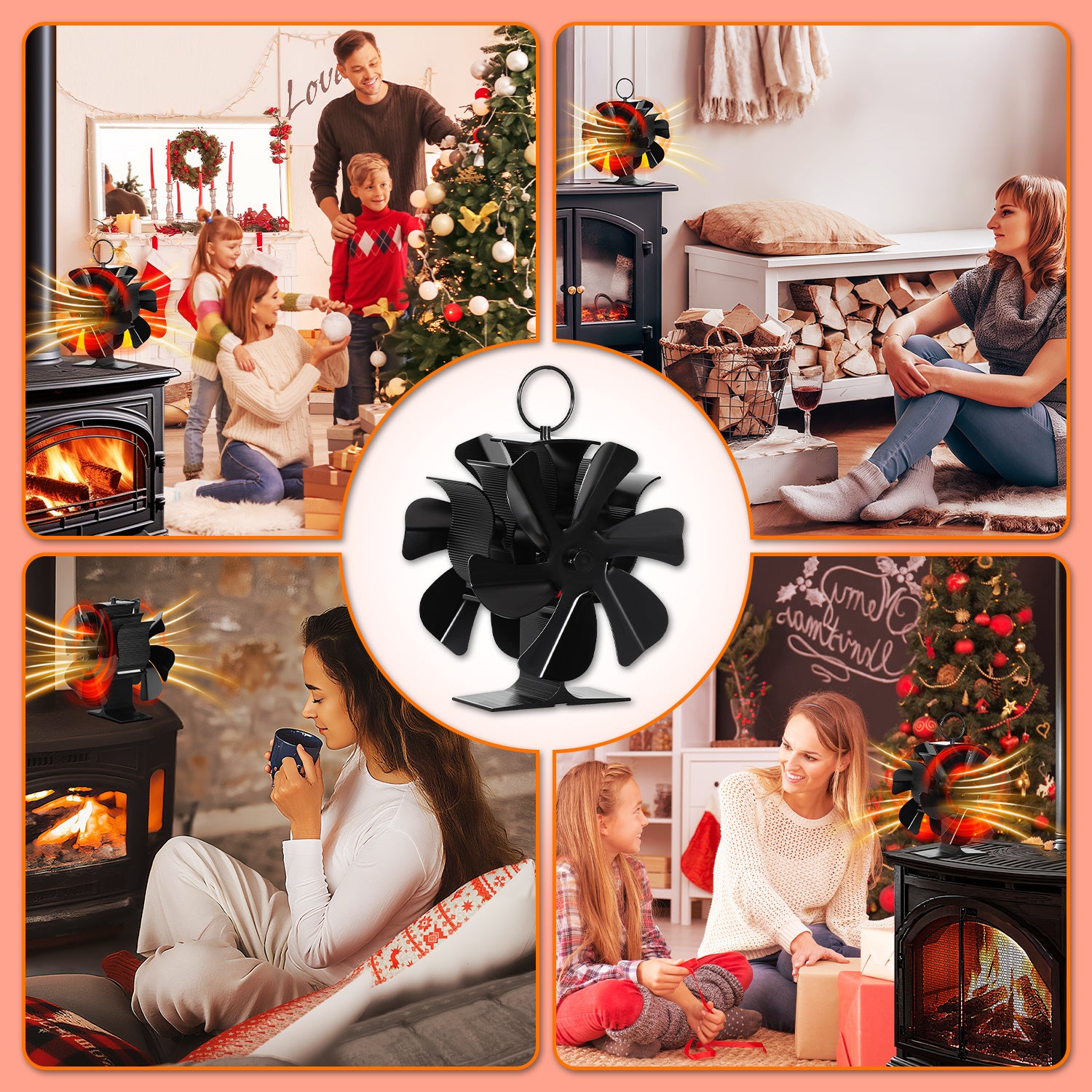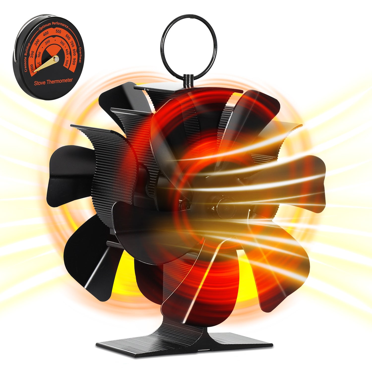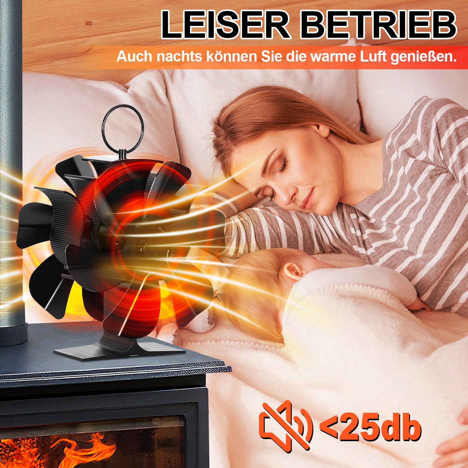 GRÖSSERER LUFTSTROM UND EFFIZIENZ: 6-Blatt-Ventilatoren die die Wärme des Ofens effektiver verteilen und die Raumtemperatur schnell erhöhen können. Der Lüfter startet automatisch, wenn die Oberflächentemperatur 50 °C erreicht. Kaminventilatoren nutzen die vom Holzofen erzeugte Wärme voll aus und können den Holzverbrauch um 40 % senken.
