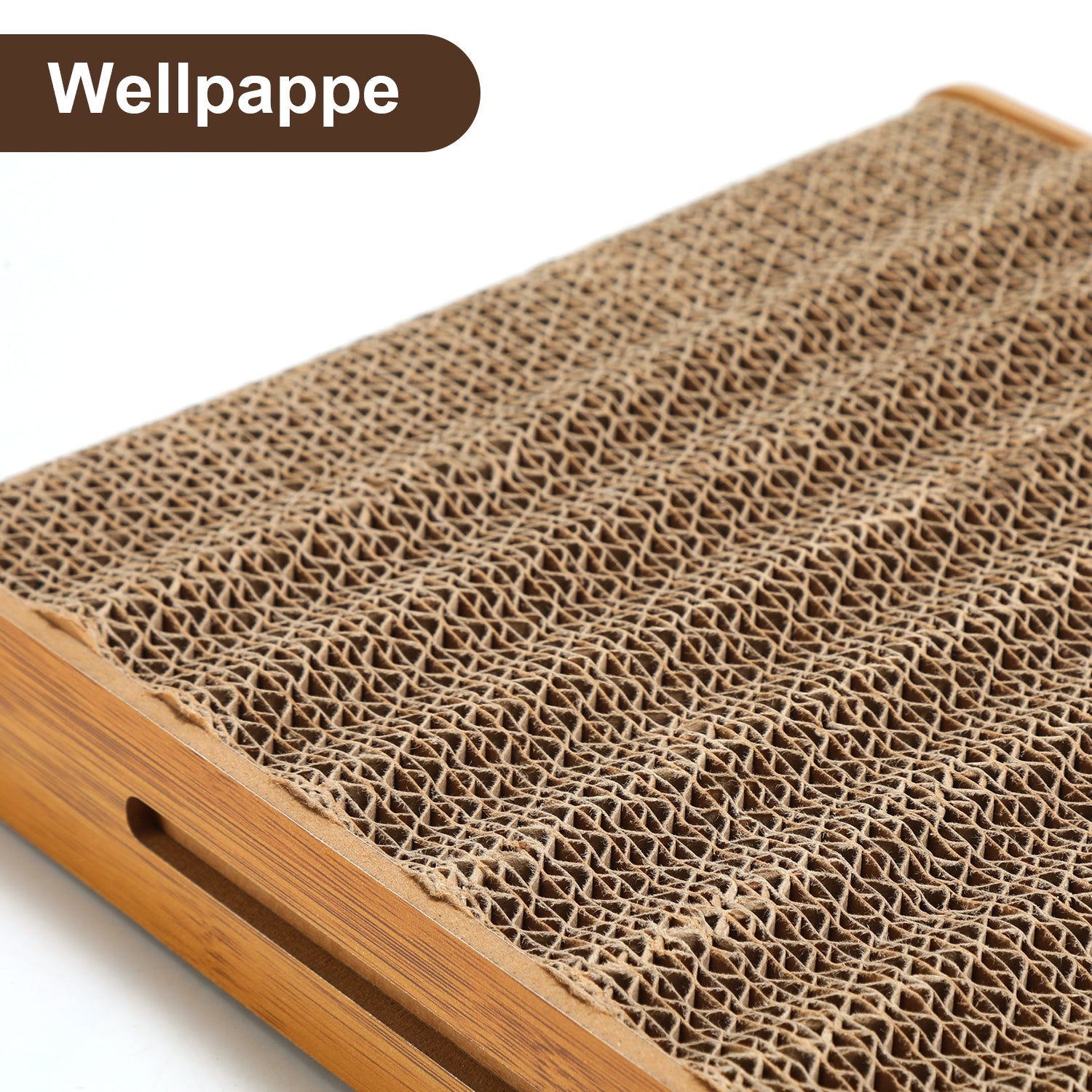 Hochwertiges Design: Das Katzenkratzbrett besteht aus recycelbarem, hochwertigem Karton, der dem durch Reibung verursachten Verschleiß standhält und so nicht nur die Verschwendung von Rohstoffen reduziert, sondern auch Recyclinganstrengungen leistet.
