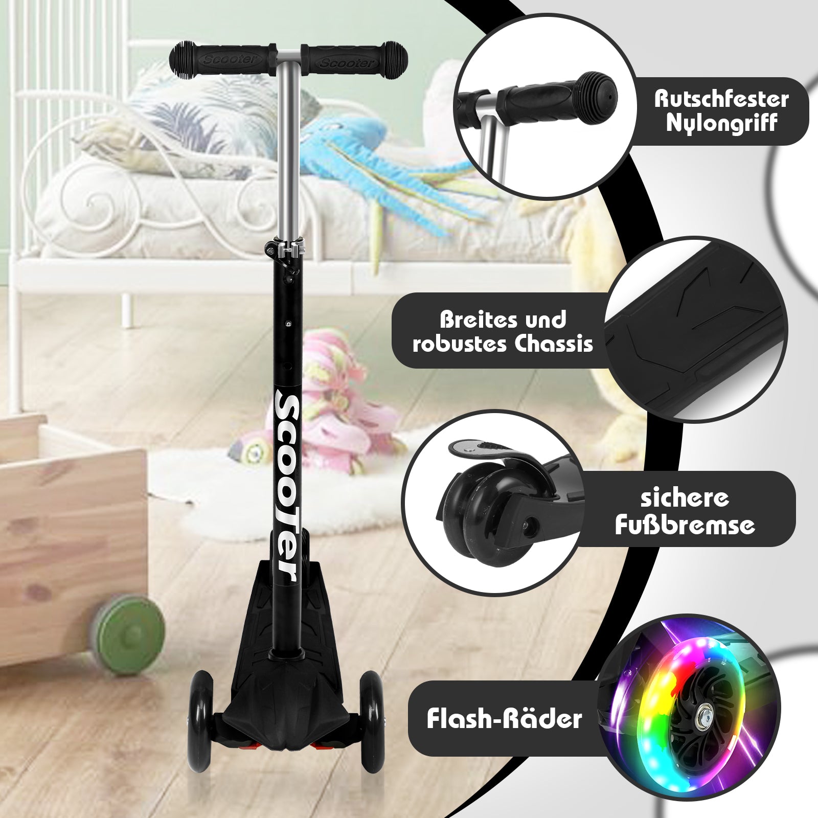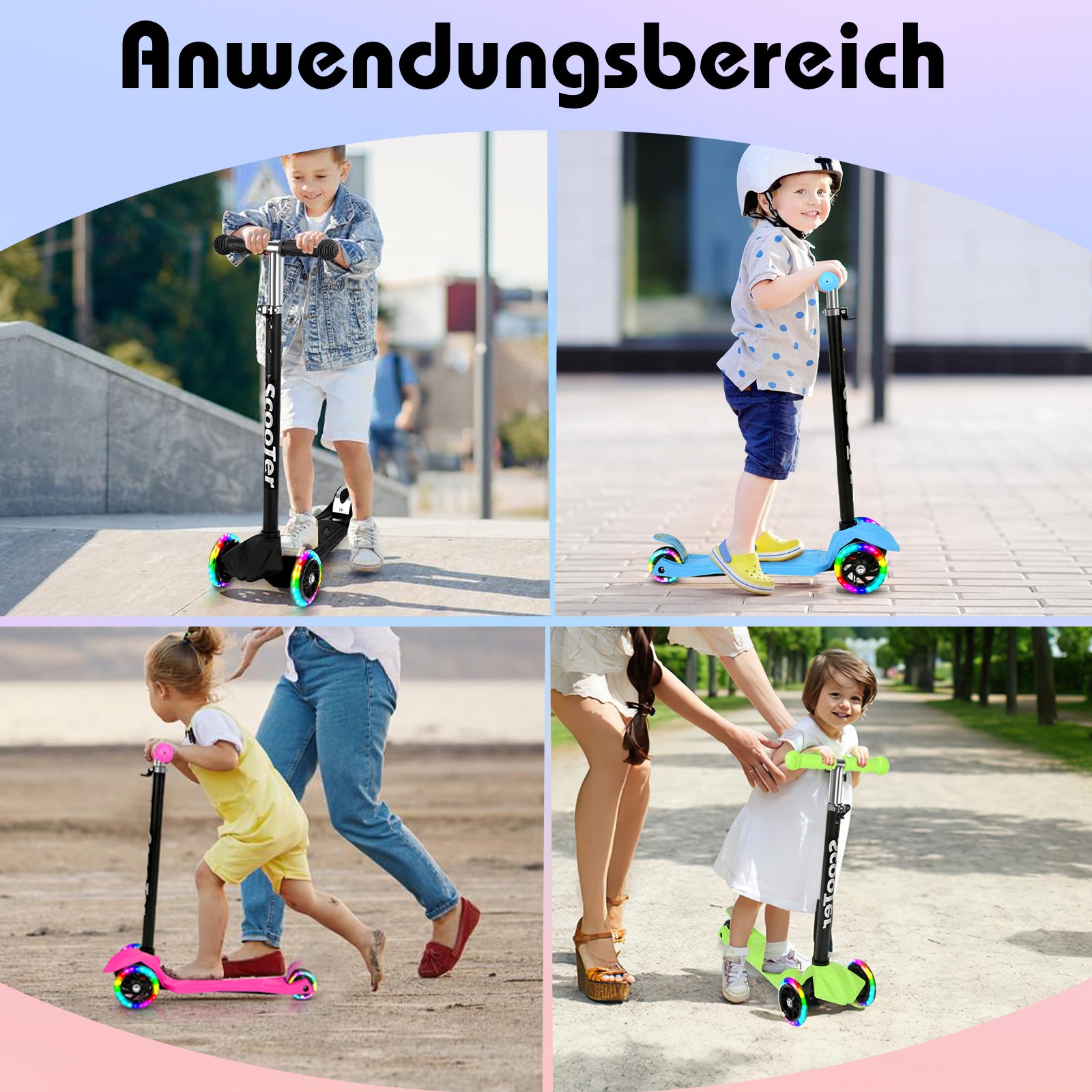 【 LED blinkende Räde】Der Roller hat 3 Räder mit eingebauten farbigen LED-Leuchten. Legen es auf den Boden und treten es sanft, das weiche Licht wird sofort mit dem Kind gleiten,Kann Tag und Nacht gesehen werden.