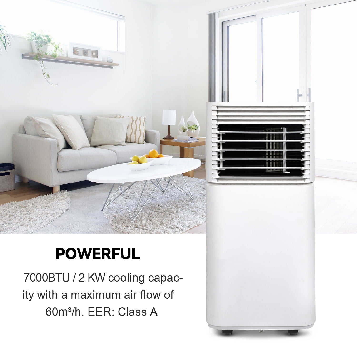 Perfekt für die Klimatisierung Ihres Wohnzimmers oder Schlafzimmers mit einer mobilen Klimaanlage.