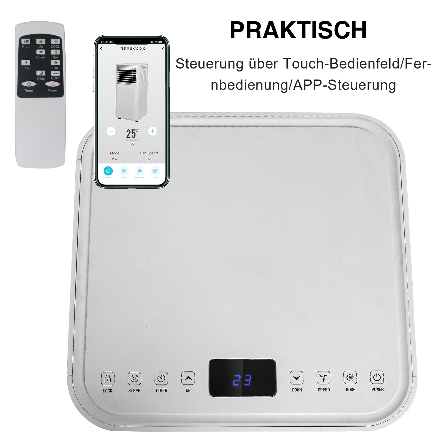 -4 Modi:Luftkühlung, Lüftung, Entfeuchtung und einem Schlafmodus.