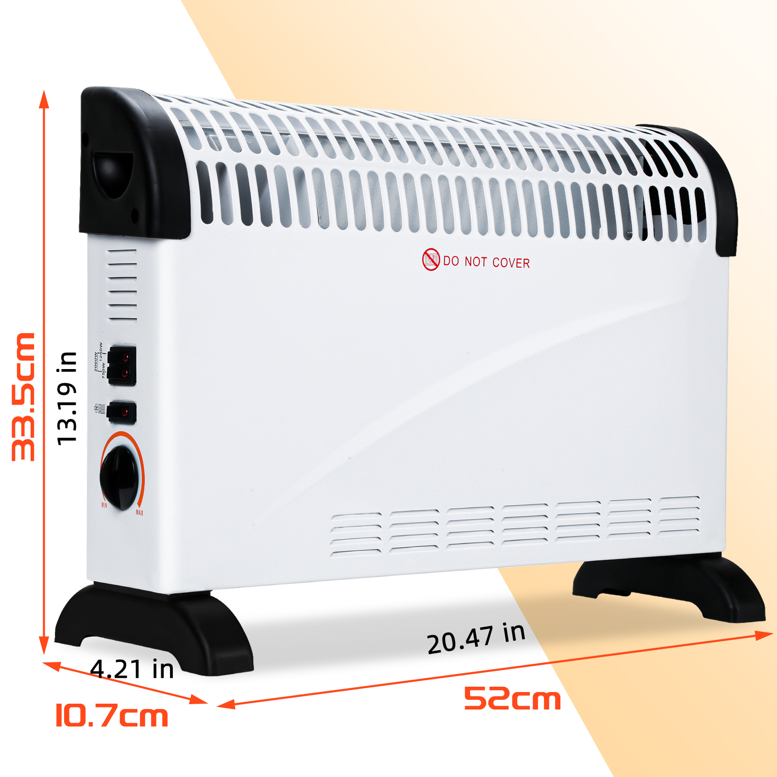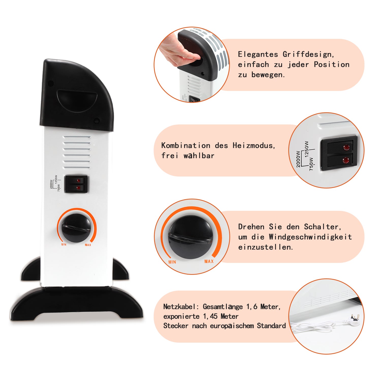 Der Konvektor verfügt über einen eingebauten Turbolüfter für eine schnellere und effizientere Verteilung der heißen Luft im ganzen Raum.