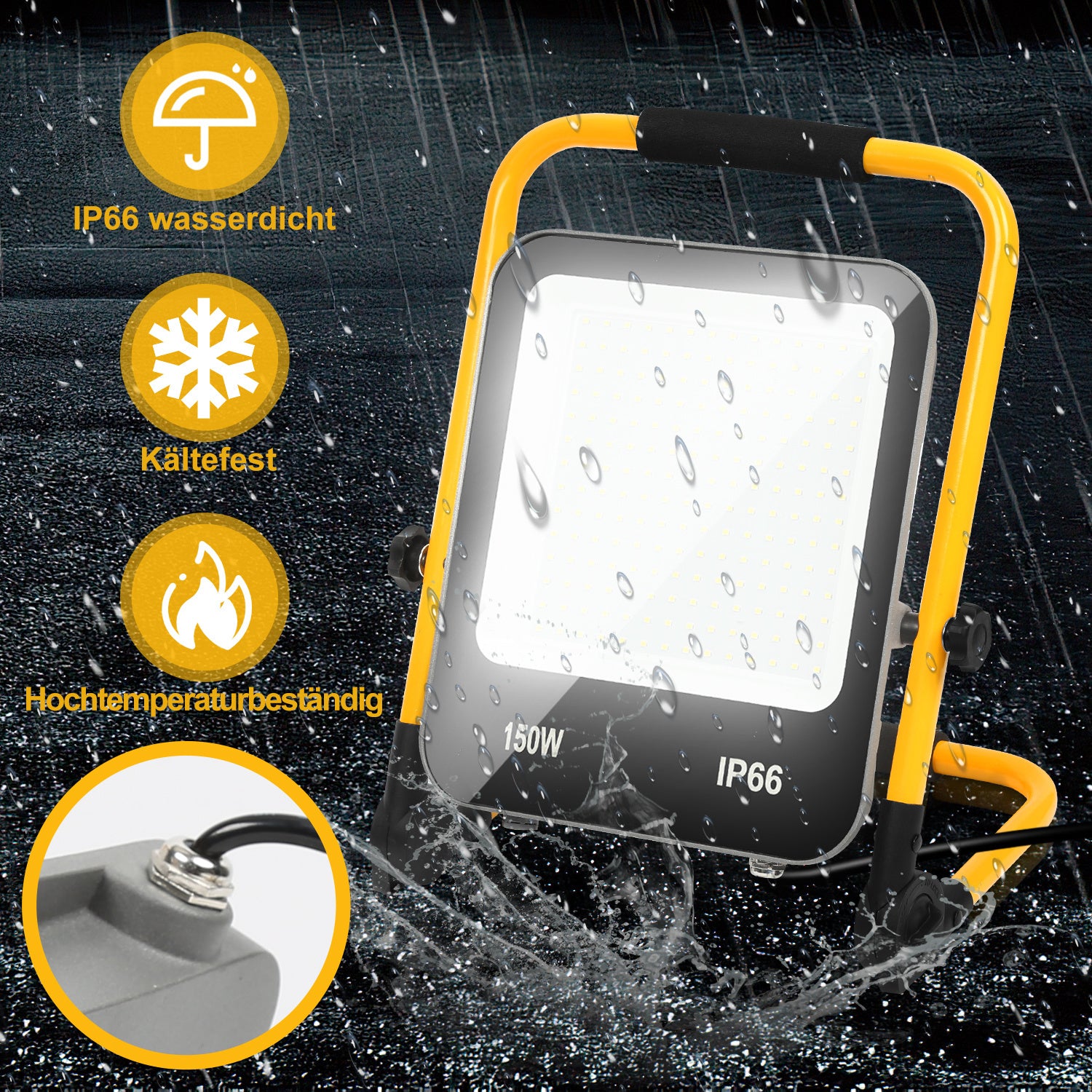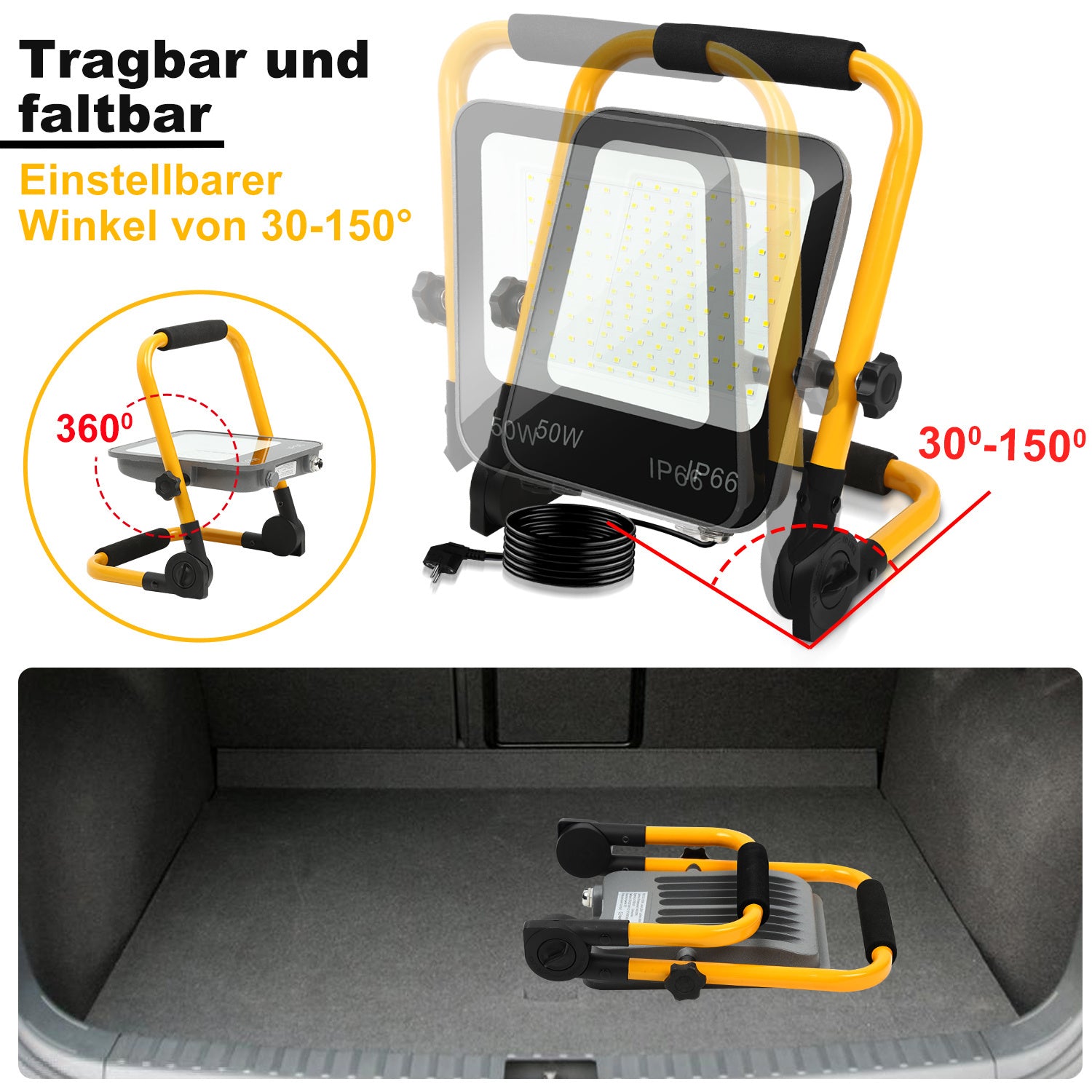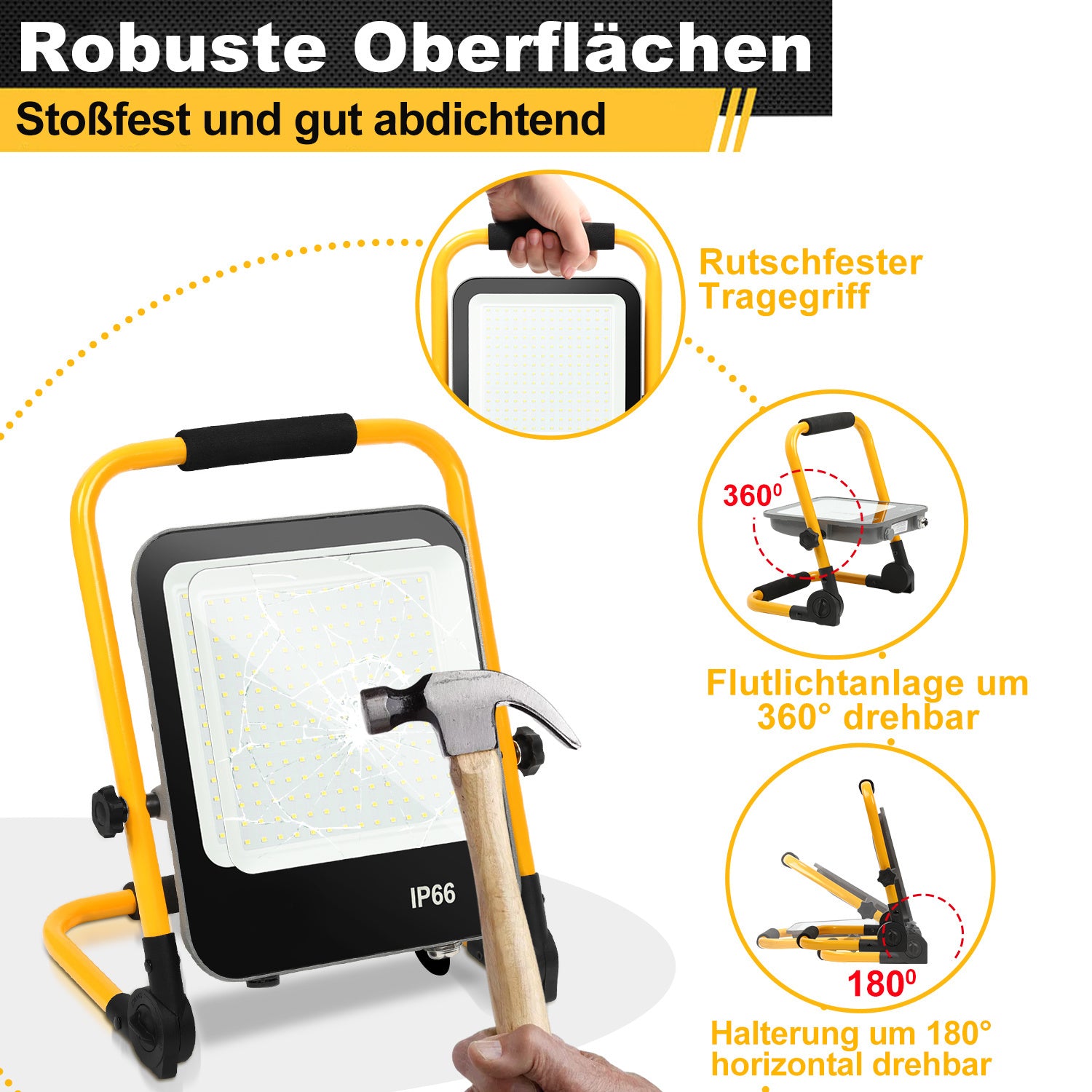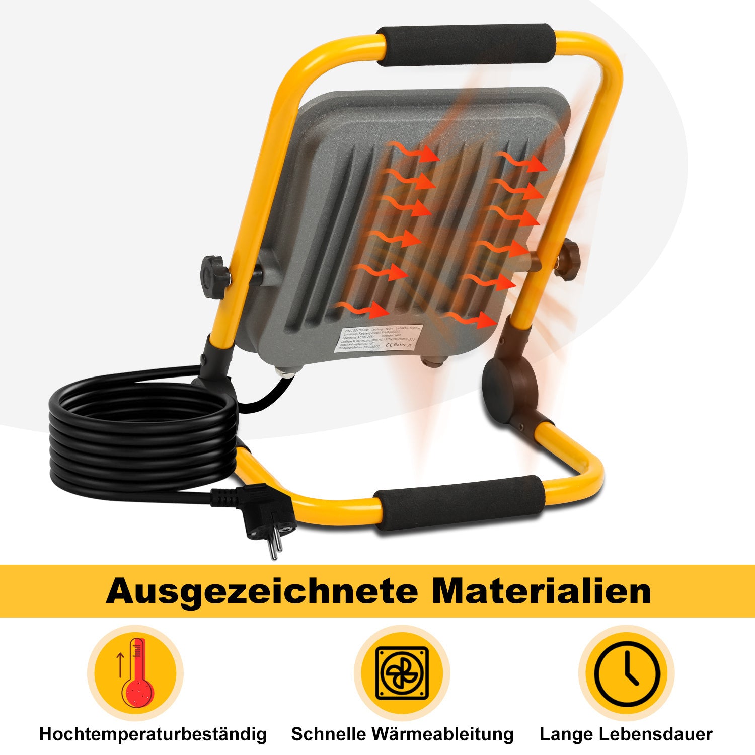 🌟 Flexible und effiziente Kühlung: Der LED Baustrahler wird mit den mitgelieferten Sterngriffschrauben am Sockel befestigt, es ist kein Werkzeug erforderlich. Dank des einzigartigen Aluminiumgehäuses und des gerippten Kühlkorbs kann die Arbeitsleuchte außerdem die Wärme effizient ableiten.