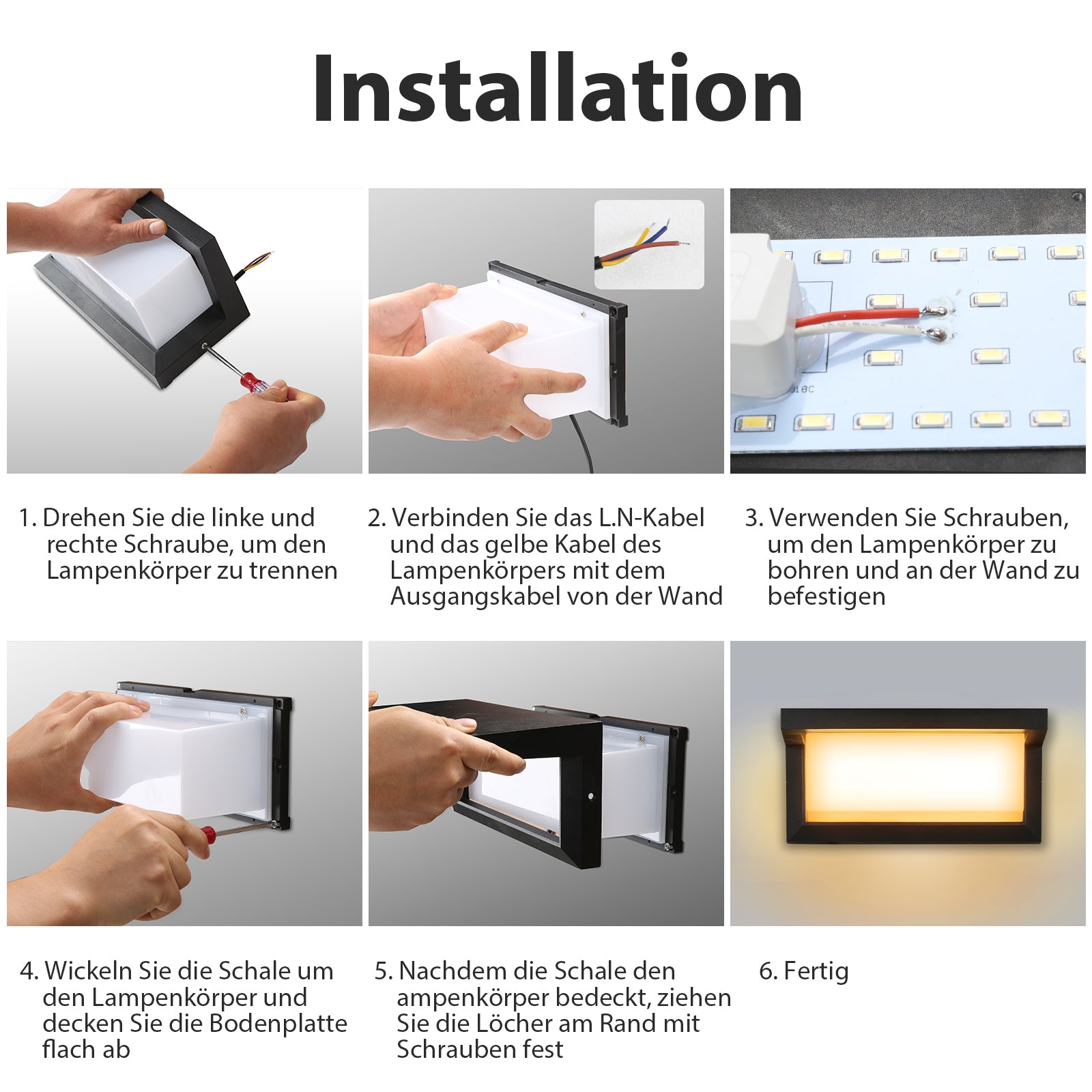 【Einfache Installation】Anwendbare Spannung: AC85-220V, verbinden Sie das Haushaltskabel mit einer Drahtklemme mit dem Wandlampenkabel. Es ist nicht schwer, mit Schrauben zu installieren, und wir bieten eine detaillierte Anleitung. Zur leichteren Reinigung kann das Gehäuse abgenommen werden.