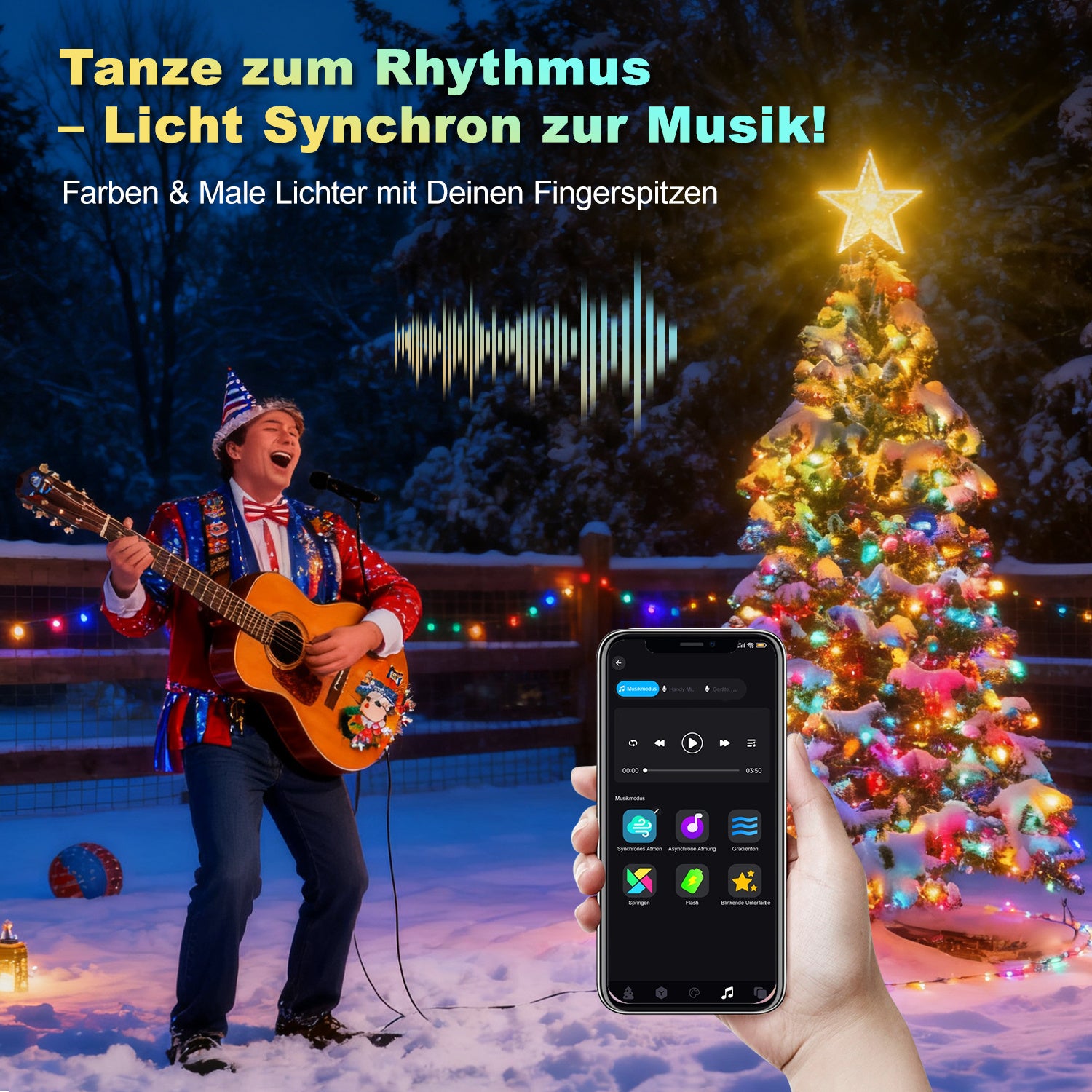Musiksynchronisation & Party-Modus: Ihr Sound, Ihr Licht! Das eingebaute Mikrofon lässt die Lichter im Takt Ihrer Musik lebendig werden und verwandelt jeden Raum sofort in eine immersive Party-Location – ideal für Feste das ganze Jahr über.
