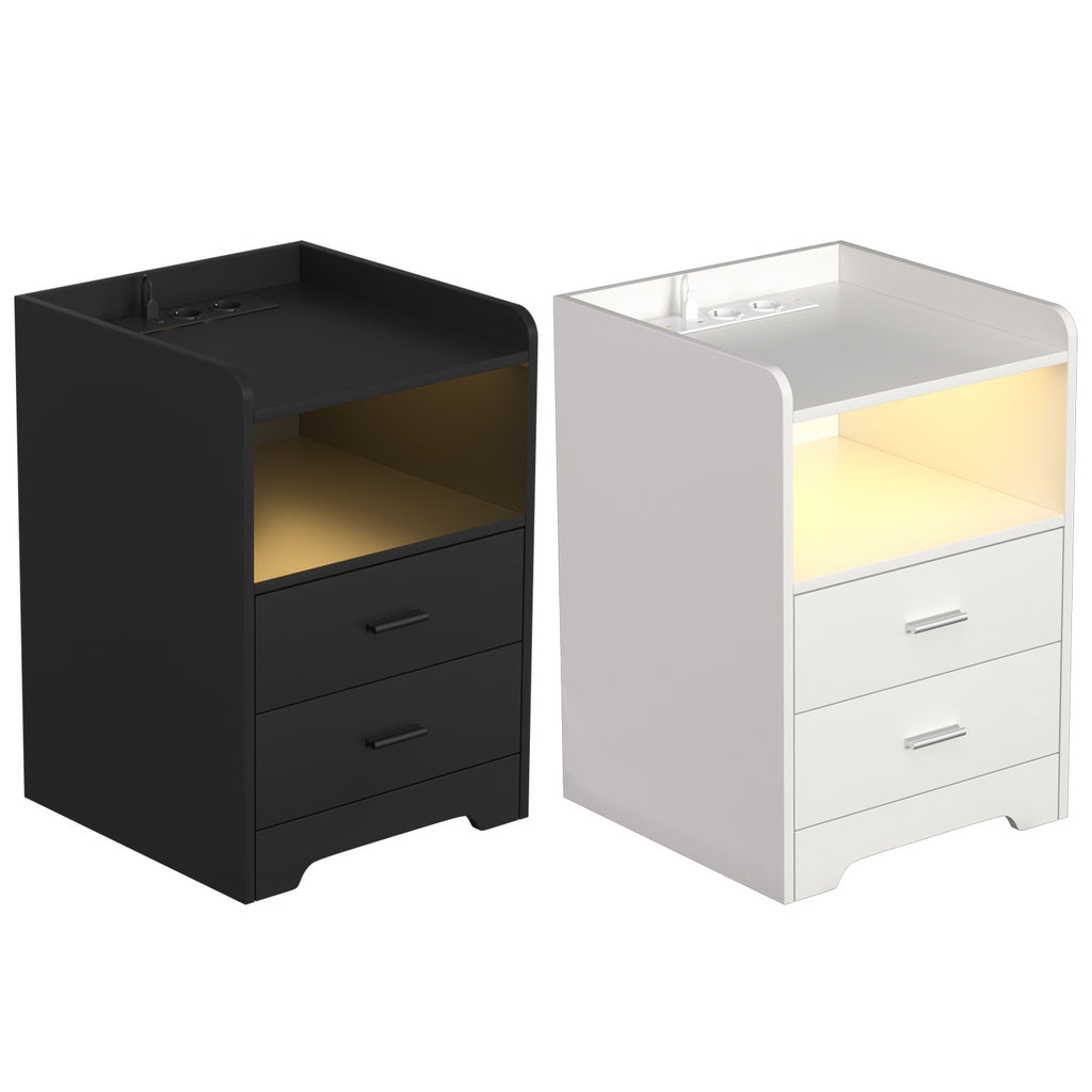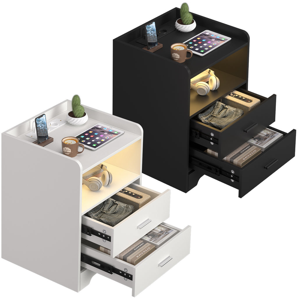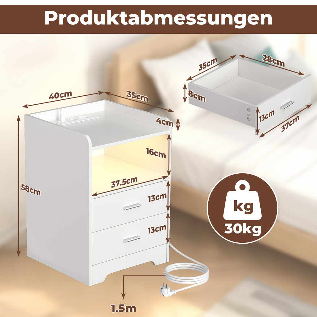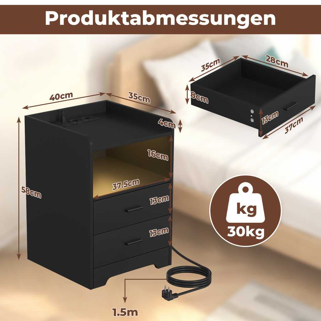SWANEW Nachttisch Ablagen, mit Steckdose & LED-Lichtern, Beistelltisch Schubfächer