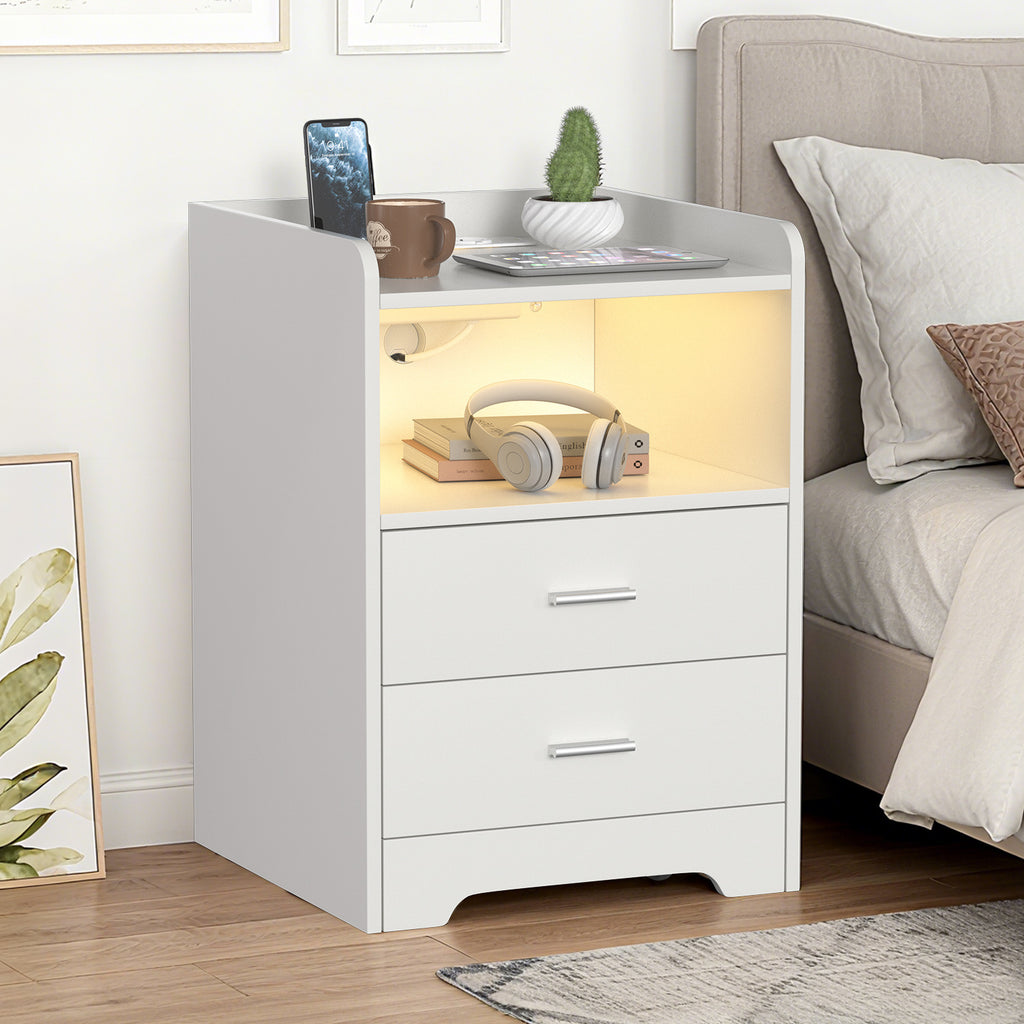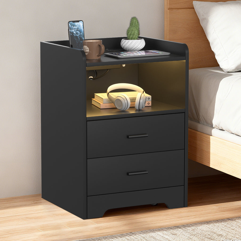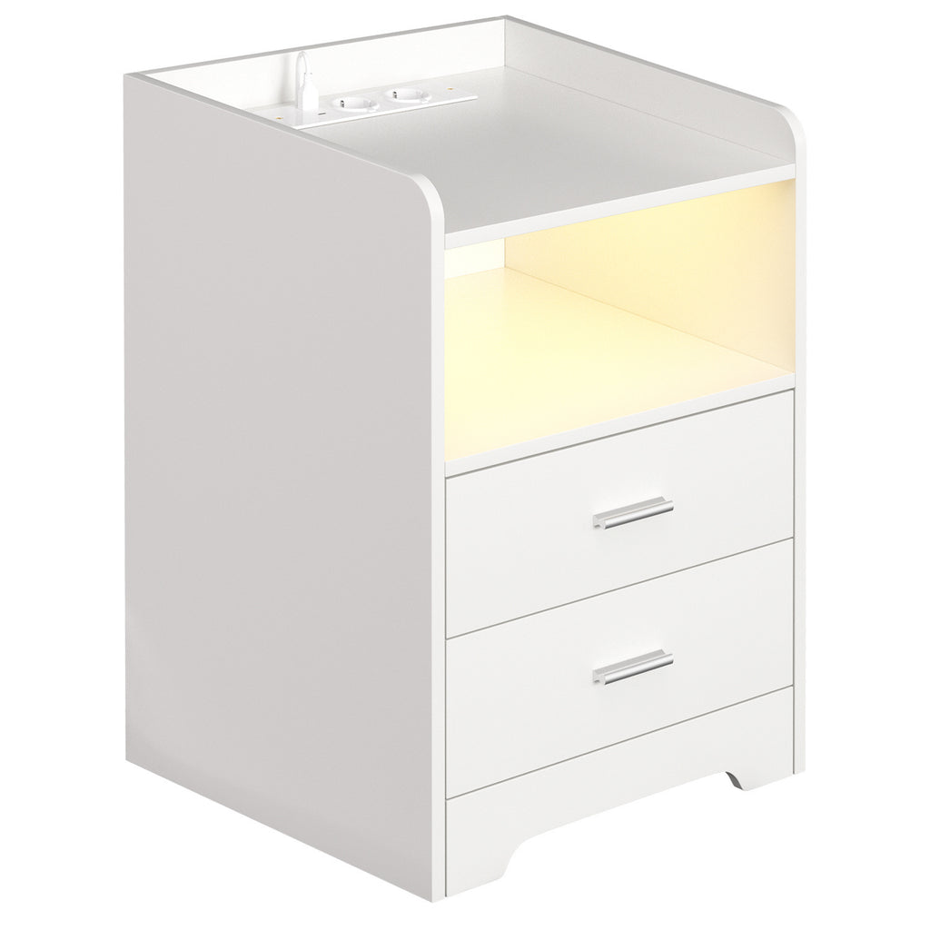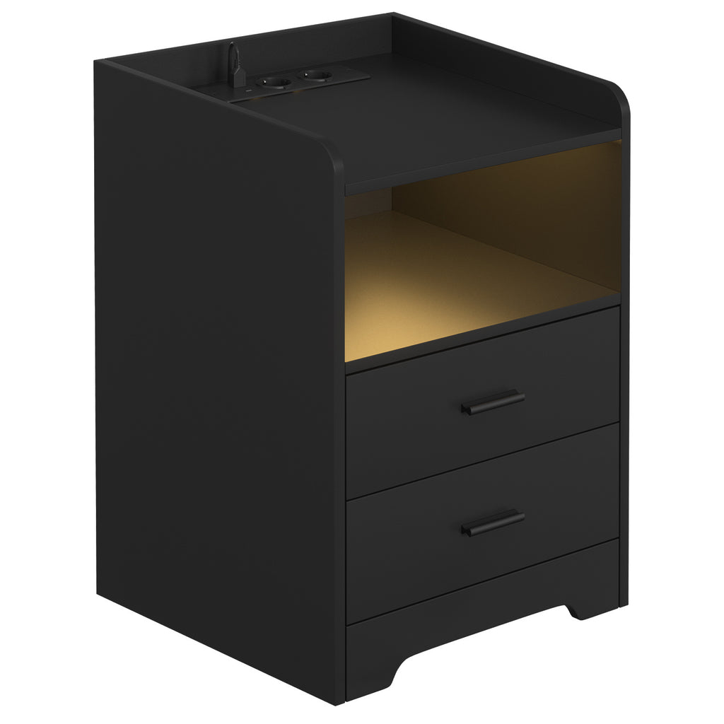 SWANEW Nachttisch Ablagen, mit Steckdose & LED-Lichtern, Beistelltisch Schubfächer