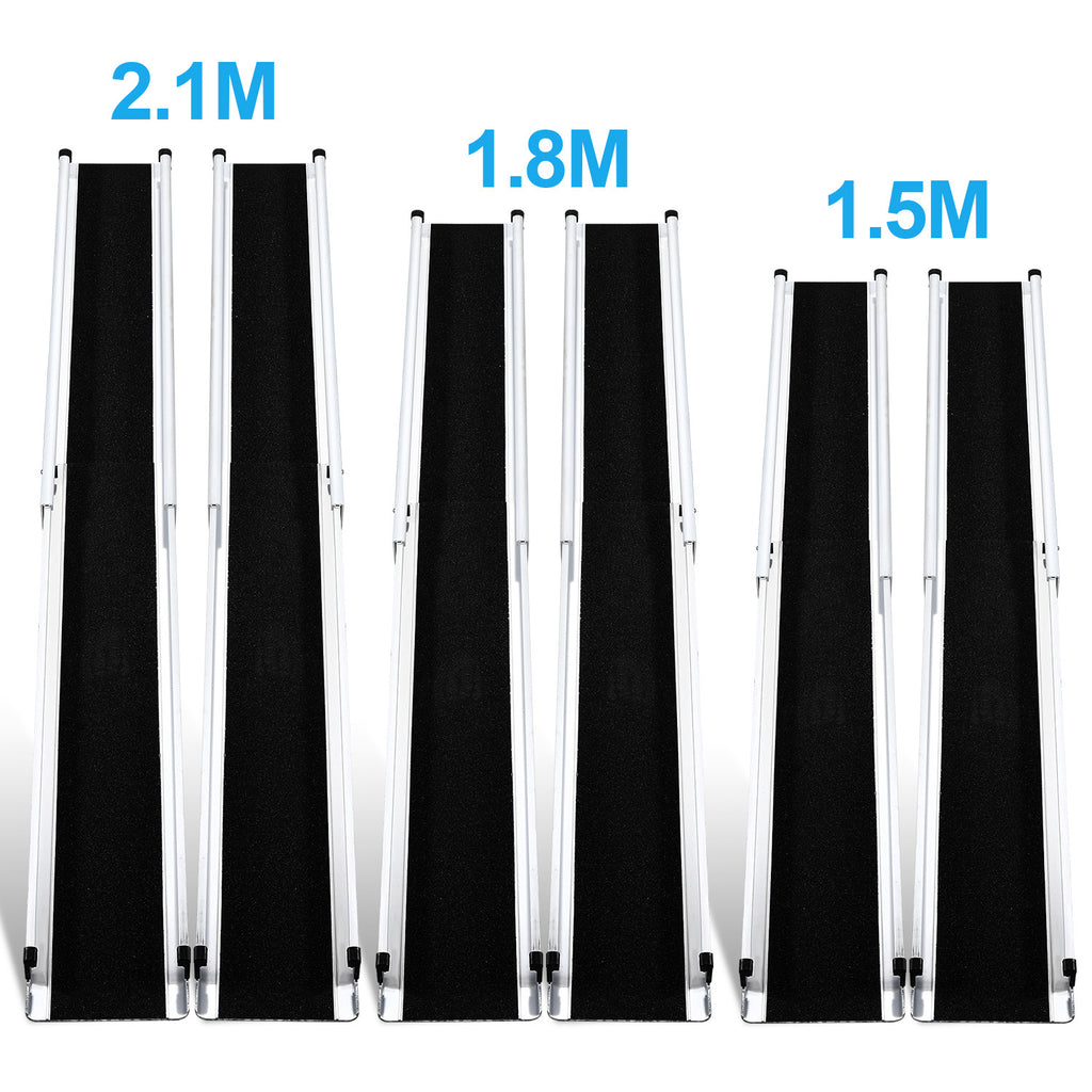 Leicht zu Verstauen: Unsere Auffahrrampe wird mit einem tragbaren Griff und einer Aufbewahrungstasche geliefert, die einfach zu transportieren und aufzubewahren ist. Sie müssen die Teleskop-Rampe nur schrumpfen und in die Aufbewahrungstasche stecken, sie lässt sich leicht und sehr platzsparend transportieren.