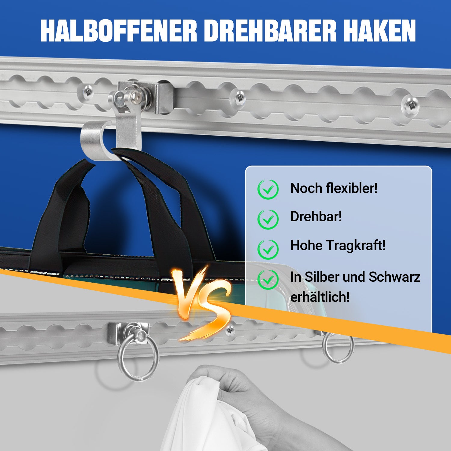 Der kraftvolle Allrounder für ALLES: Sichere Tragkraft von 25 lbs (ca. 11 kg) – hält Werkzeug, Helme, Seile oder Taschen zuverlässig an allen L-Schienen-Typen (Standard, Flugzeug, Schrägkante). Ordnung & Griffbereitschaft überall.