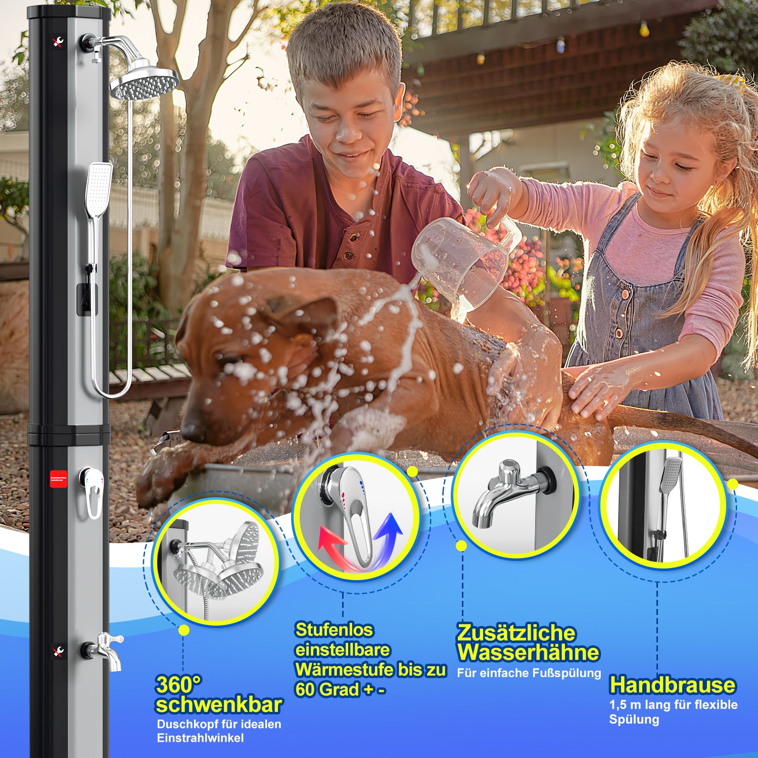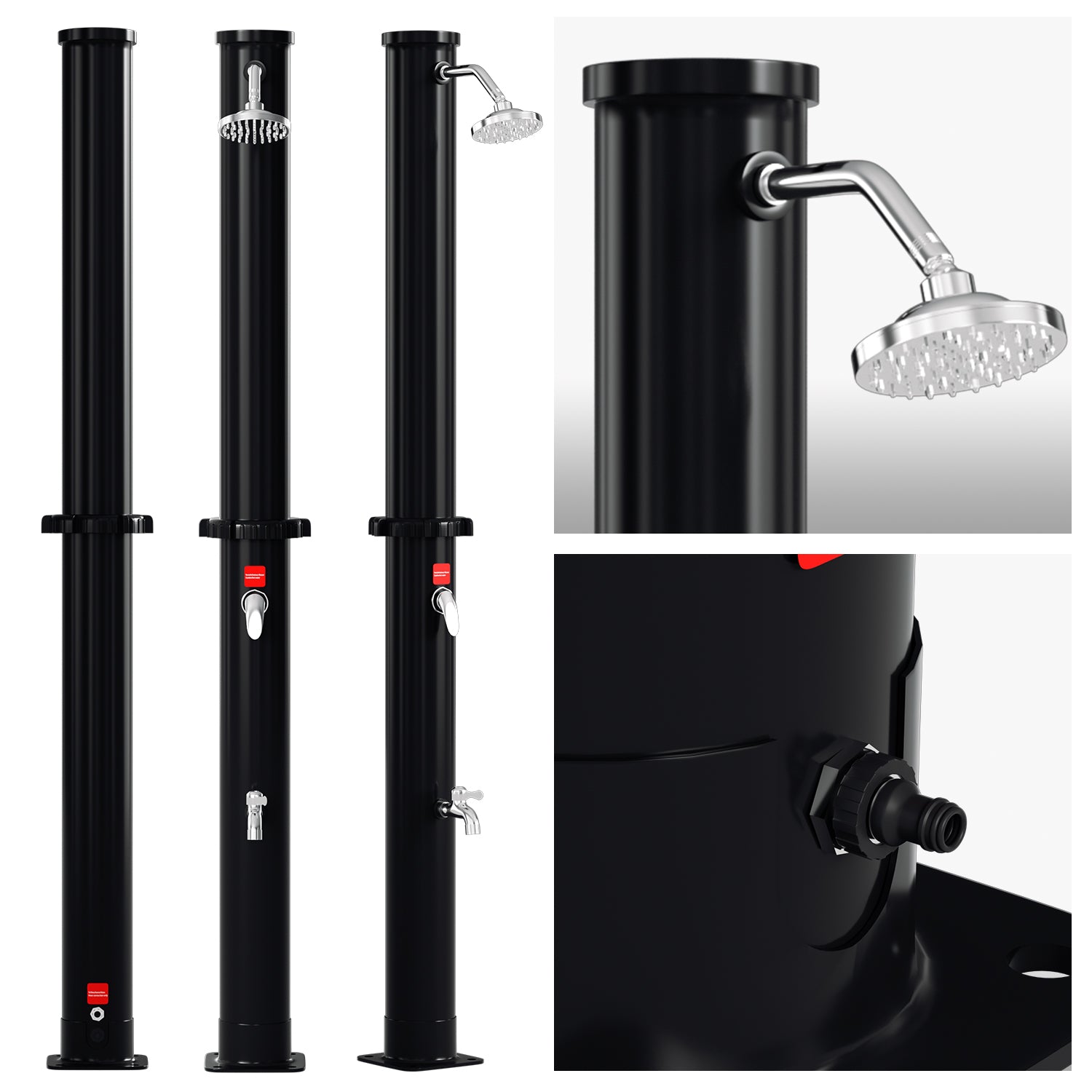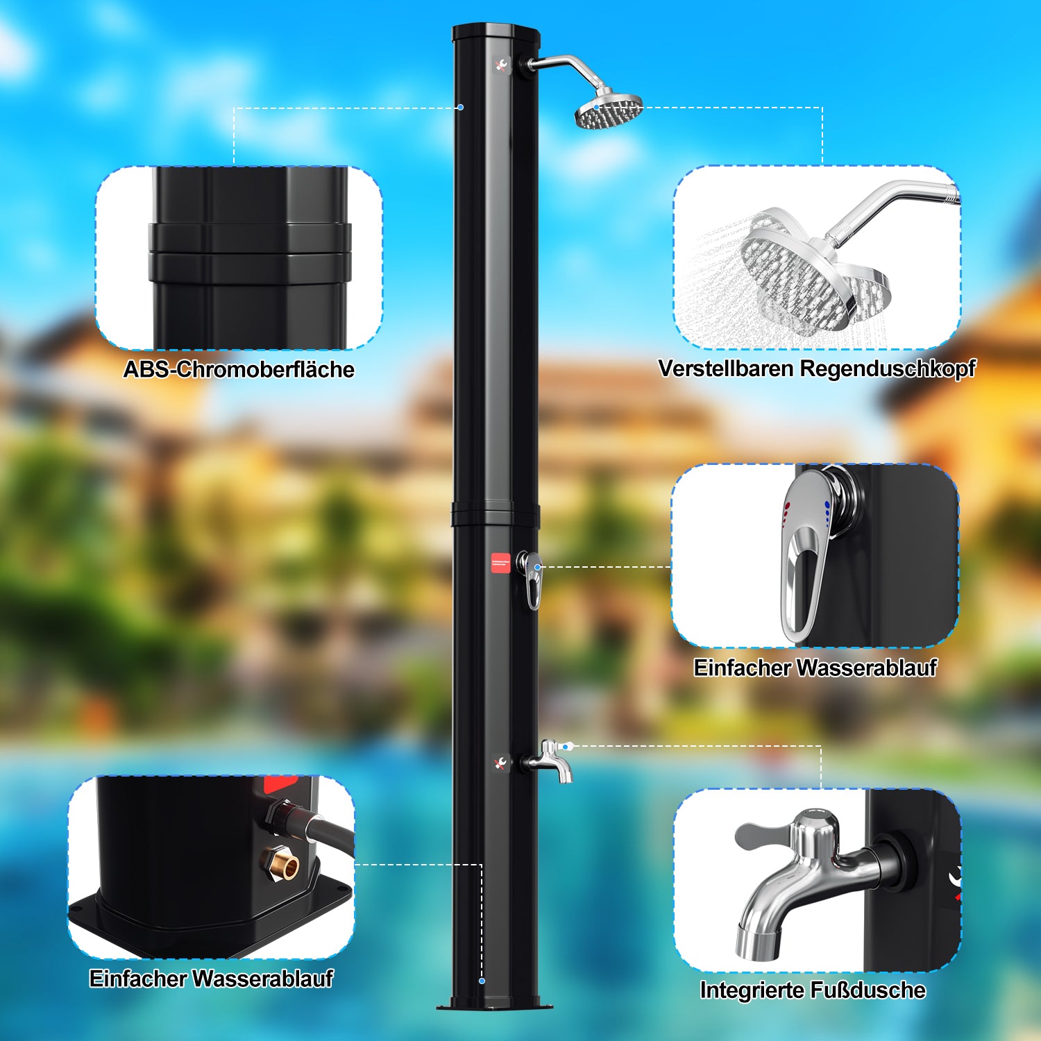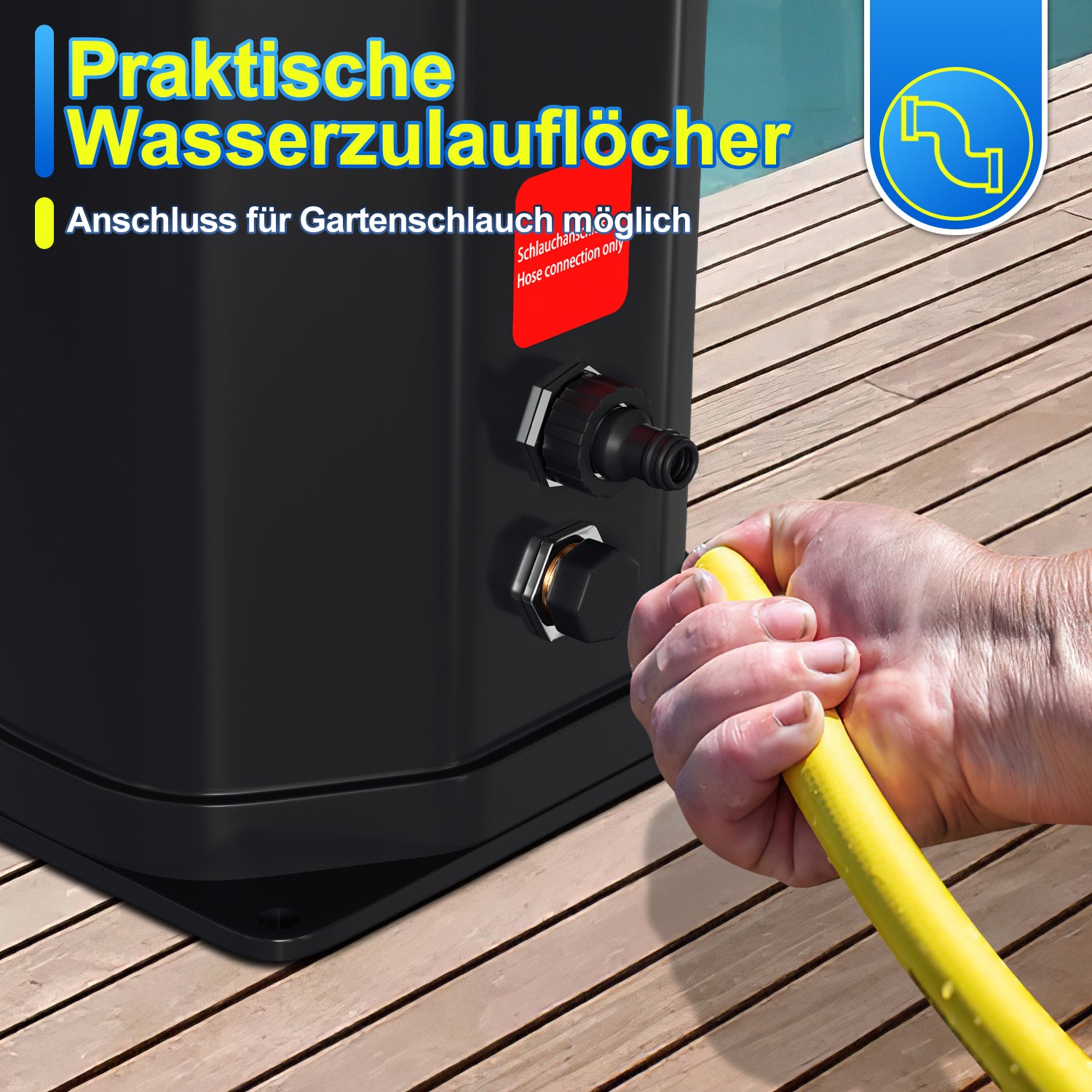 🏊[Hochwertige Materialien, umweltfreundlicher] Diese Solar-Gartenduschen bestehen aus UV-beständigem Kunststoff, der die Wärmeabsorption maximiert und eine schnelle Erwärmung und Wärmeumwandlung bis zu 60° ermöglicht, ohne dass Strom benötigt wird, was sie bequemer und umweltfreundlicher macht. Es erreicht Warmwasserheizung durch Solarenergie und ist umweltfreundlich für Heizung.