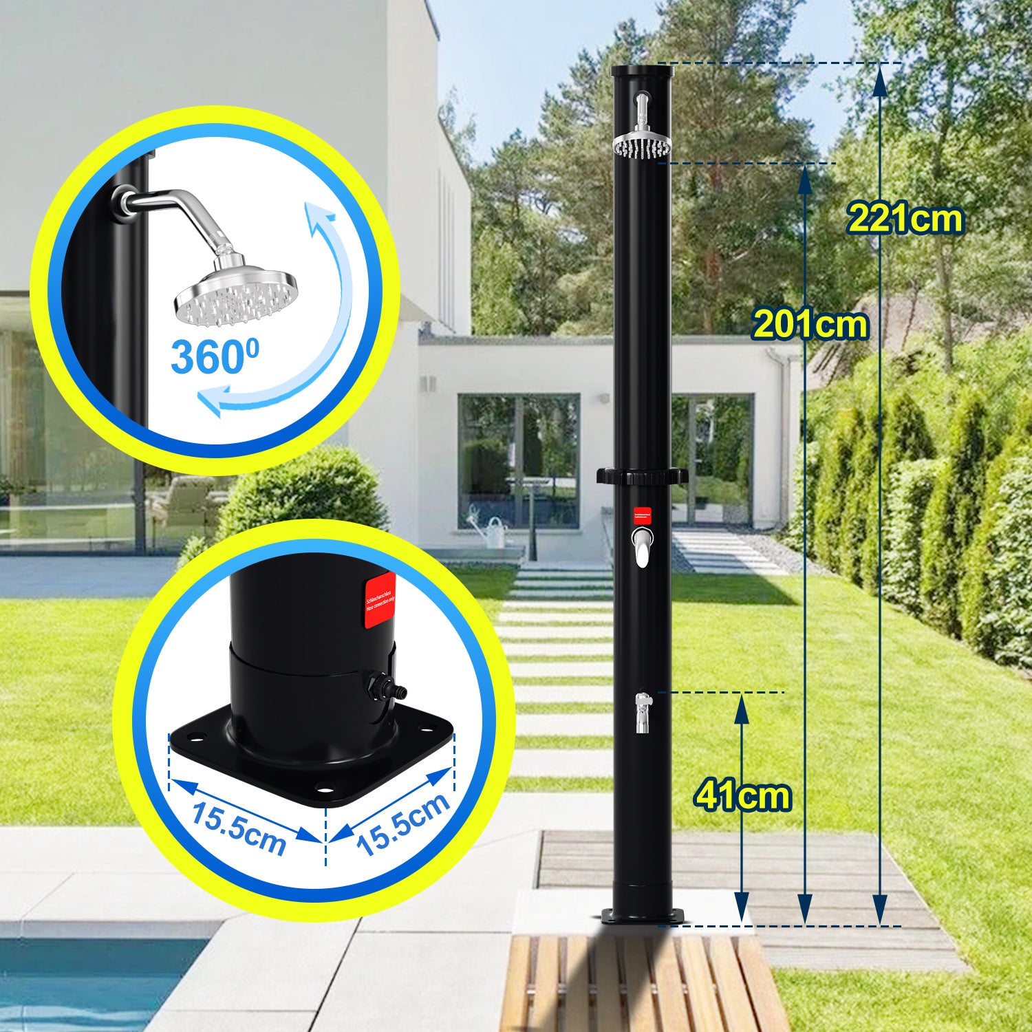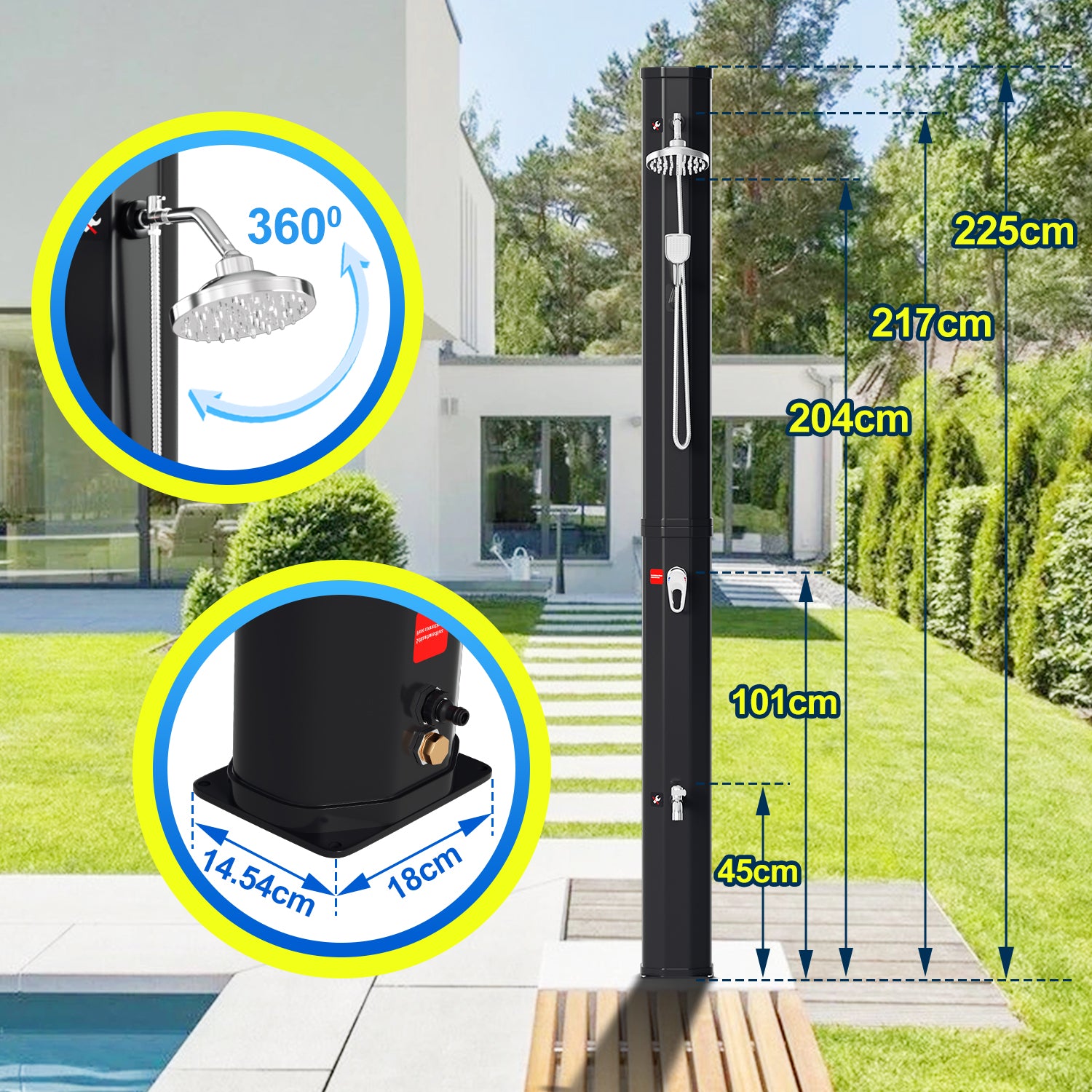 🏊[Qualitäts-Solardusche] Diese 20/35/40-Liter-Solardusche mit eleganten Chrombeschlägen und stabilem Kunststoffsockel, mit einer Höhe von bis zu 217 cm, eignet sich perfekt für jeden Körpertyp. Ob nach einem sportlichen Ereignis oder einfach nur zur Abkühlung, Sie werden immer ein einzigartiges Duscherlebnis im Freien unter dem Duschkopf haben.