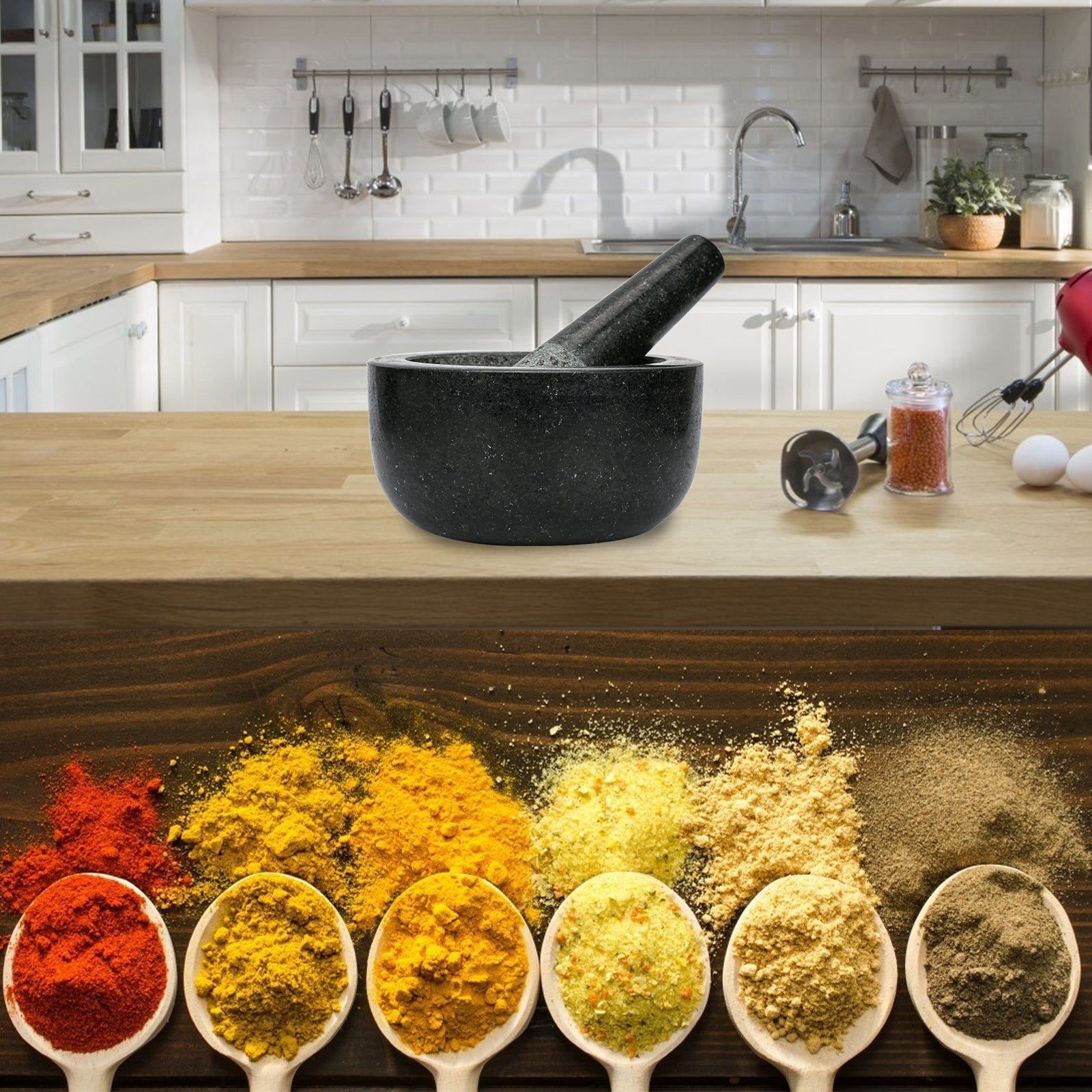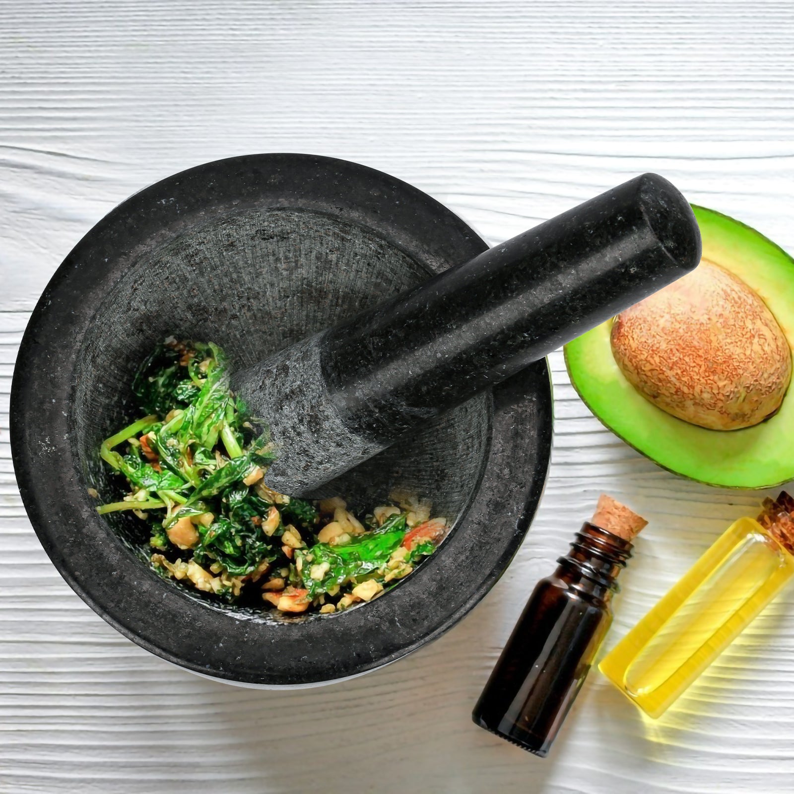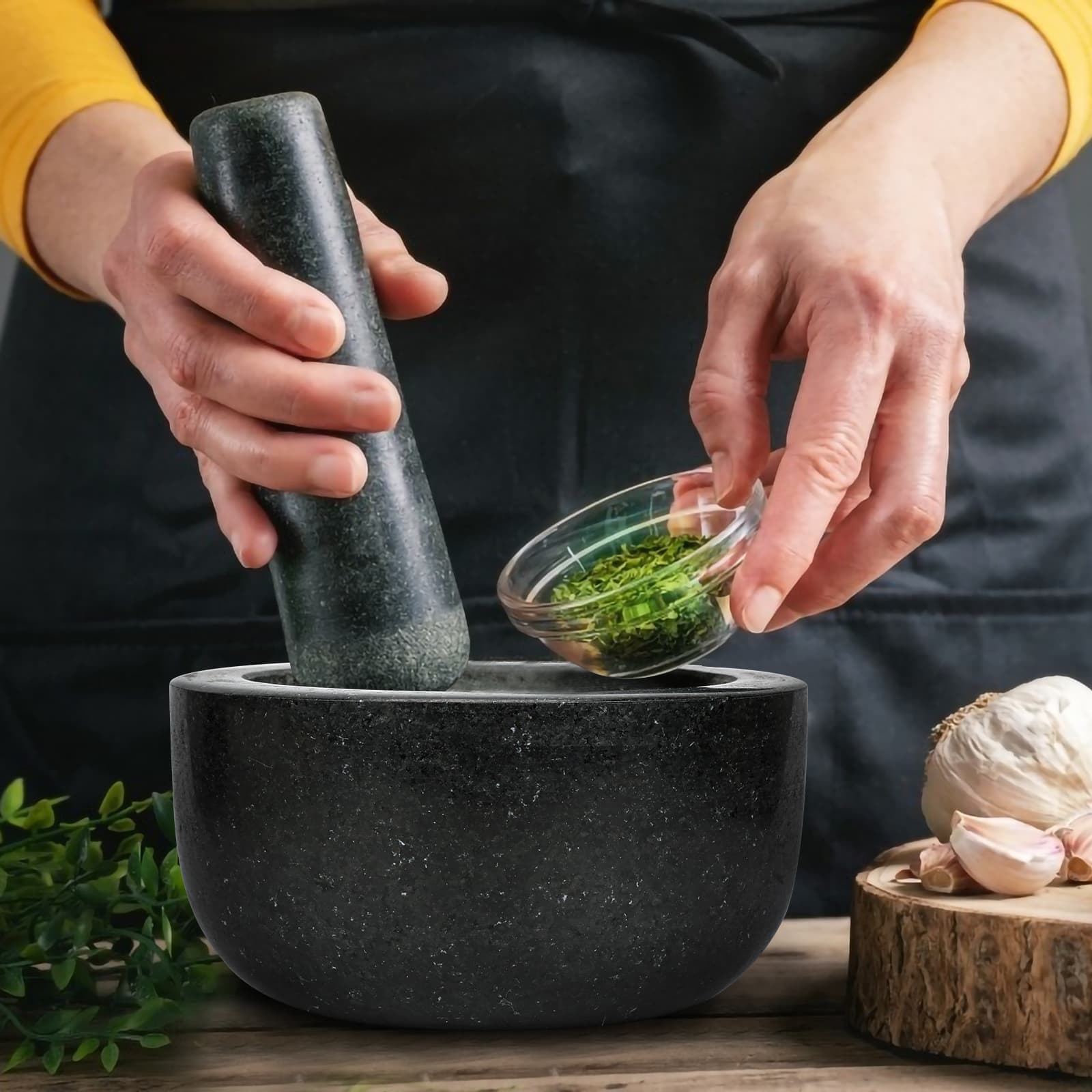 TRUE NATURAL GRANITE: Unser Mörser und Stößel sind aus dem feinsten echten Naturstein für lange Haltbarkeit und Schönheit hergestellt.