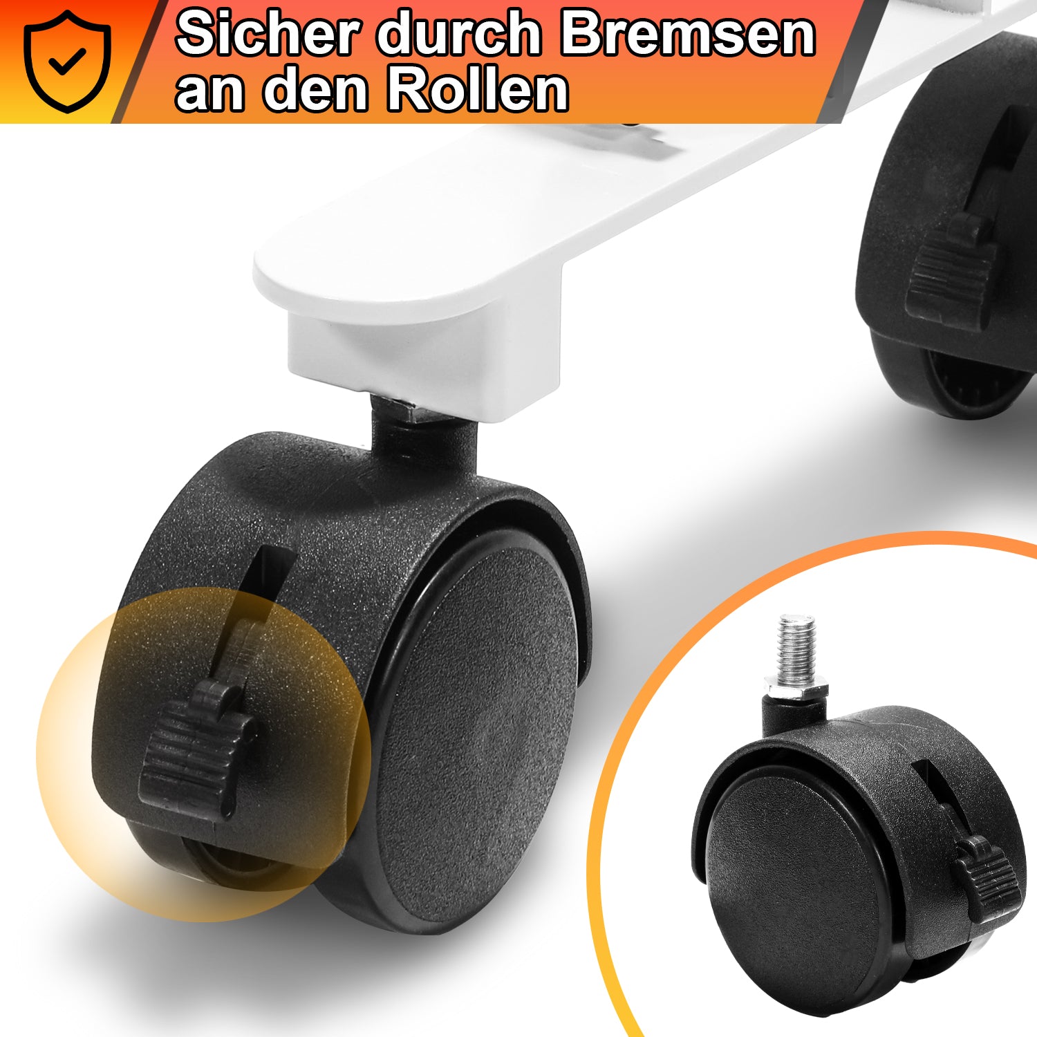 Die Rollen lassen sich auch einklemmen, damit die Heizung nicht wegrollen kann. Diese sind ebenfalls optional, die Standfüße können auch ohne die Rollen benutzt/aufgebaut werden.