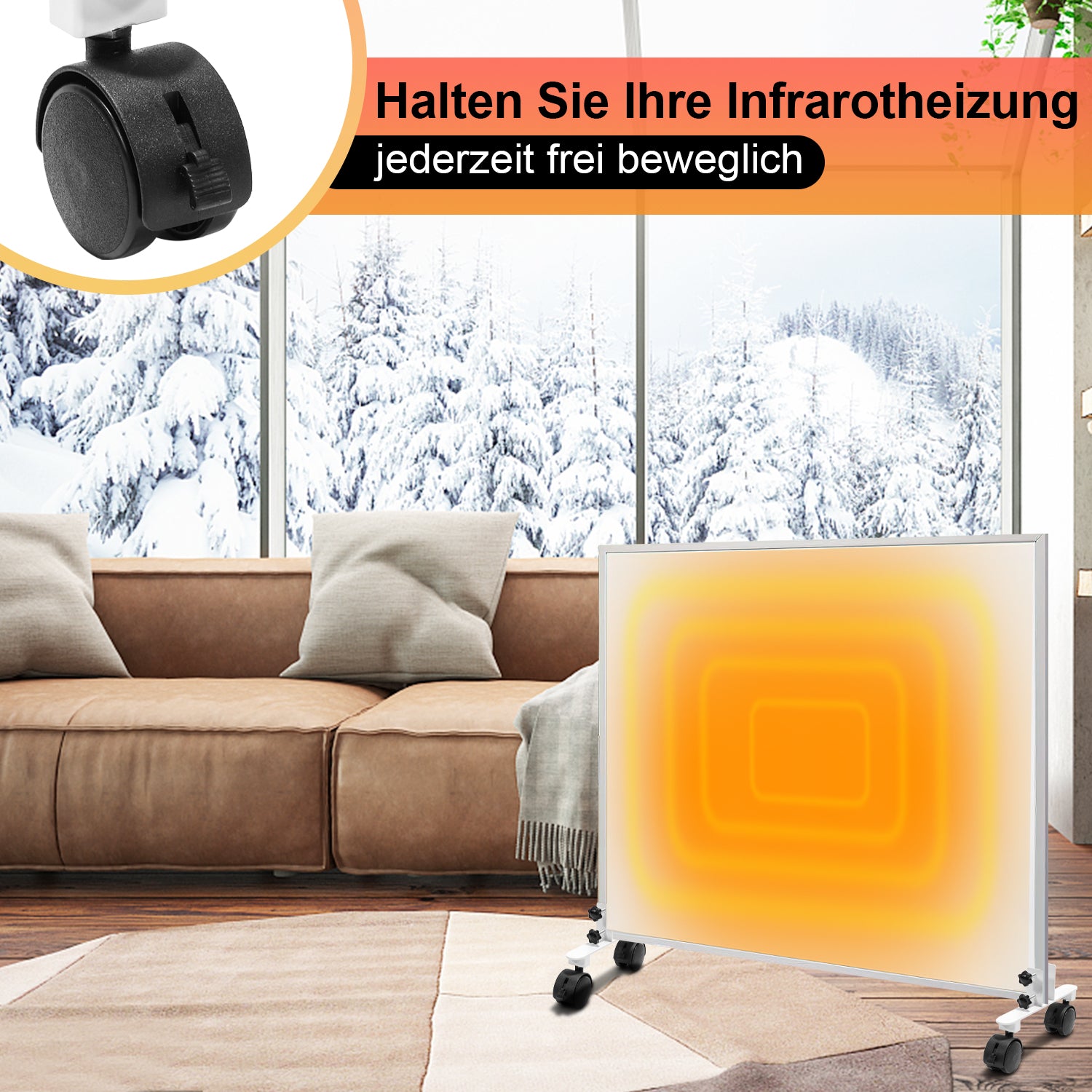 🔧【Free moving heater】Die Räder können um 360° gedreht werden und können einfach ausgetauscht werden, wenn Sie die Infrarotheizung als mobiles Standgerät flexibel und bequem in Ihrem Zuhause, Ihrer Wohnung oder Ihrem Büro nutzen möchten.
