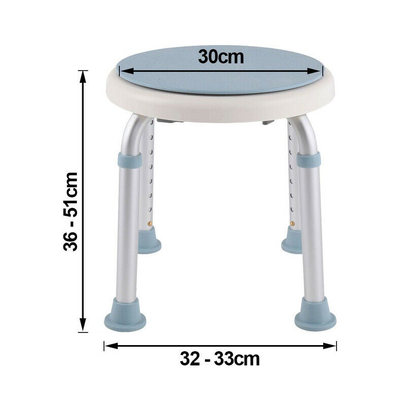 Der Duschhocker hat eine Tragfähigkeit von 136 kg und ein Gewicht von nur 2 kg, der Sitz ist um 360° drehbar mit Stoppfunktion. Es unterstützt die tägliche Hygiene unter der Dusche für Menschen mit eingeschränkter Mobilität.
